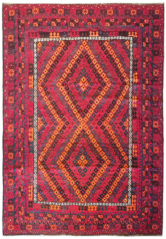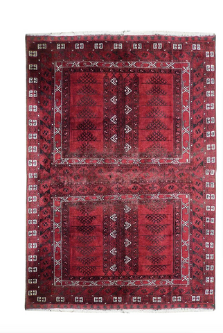 • 5 x 7.10 Burgundy Peshawar Vegetable Dyed Rug 18005