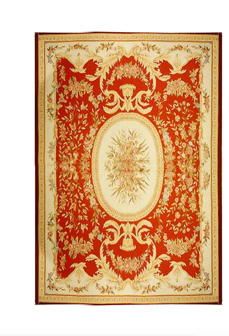 6 ' x 9 ' Beige & Red Flowers Agra Rug - bestrugplace