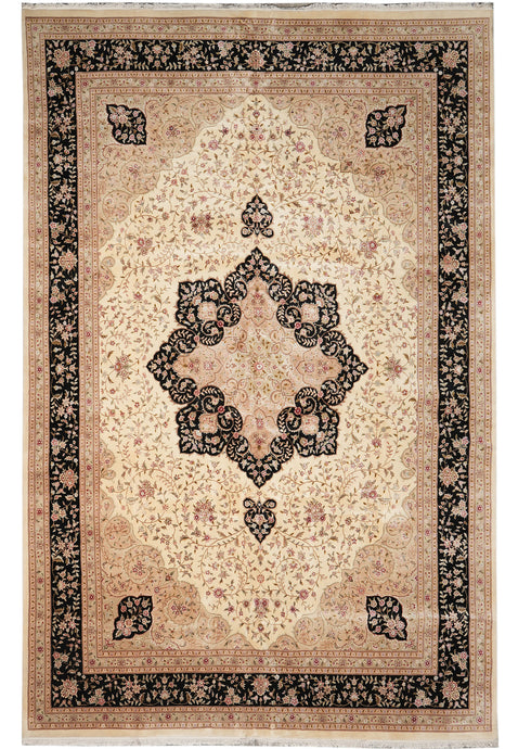 9.9 X 13.9 Quality Wool and Silk Sino Tabriz Rug Black#PIX-10029![]()  - Sale price