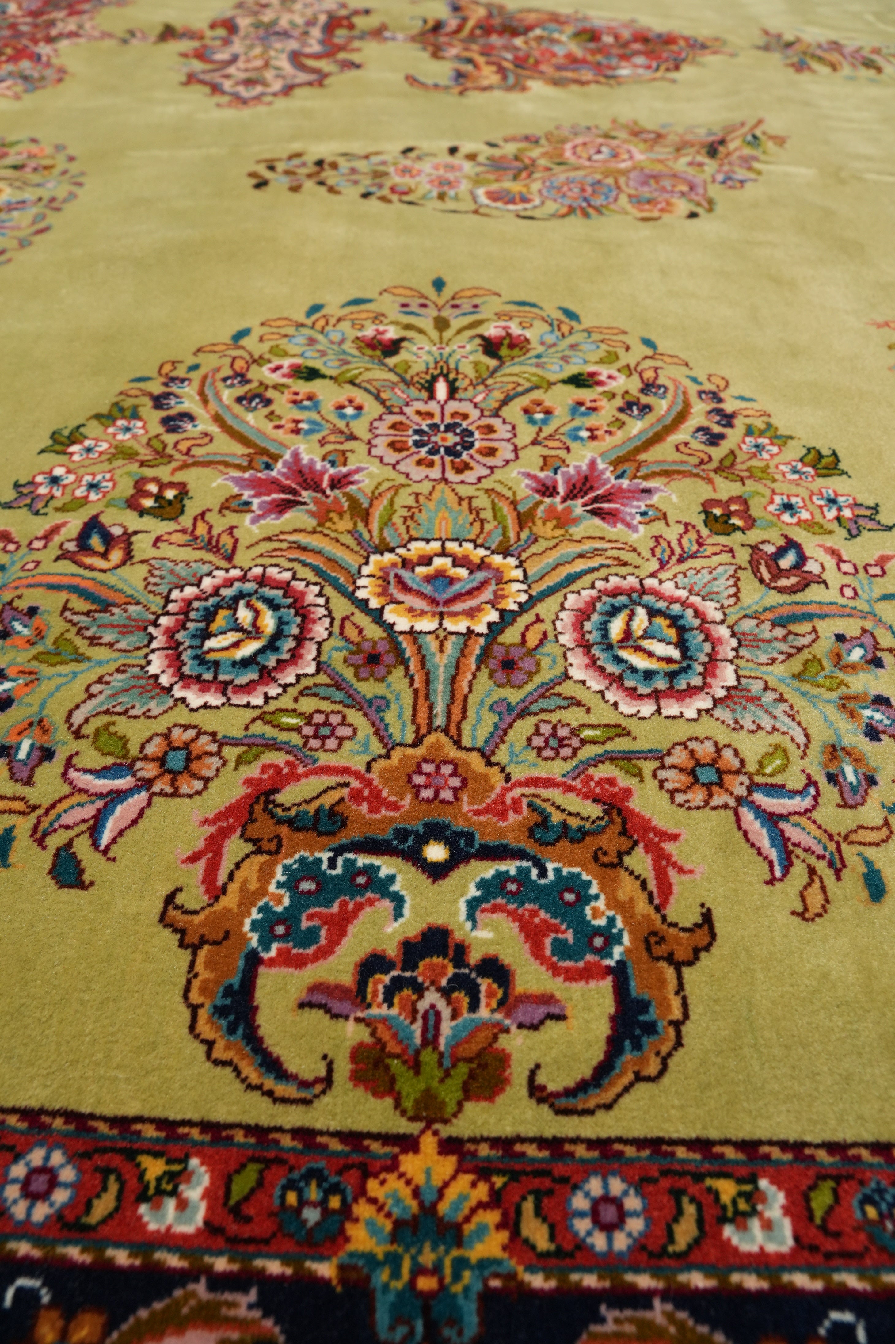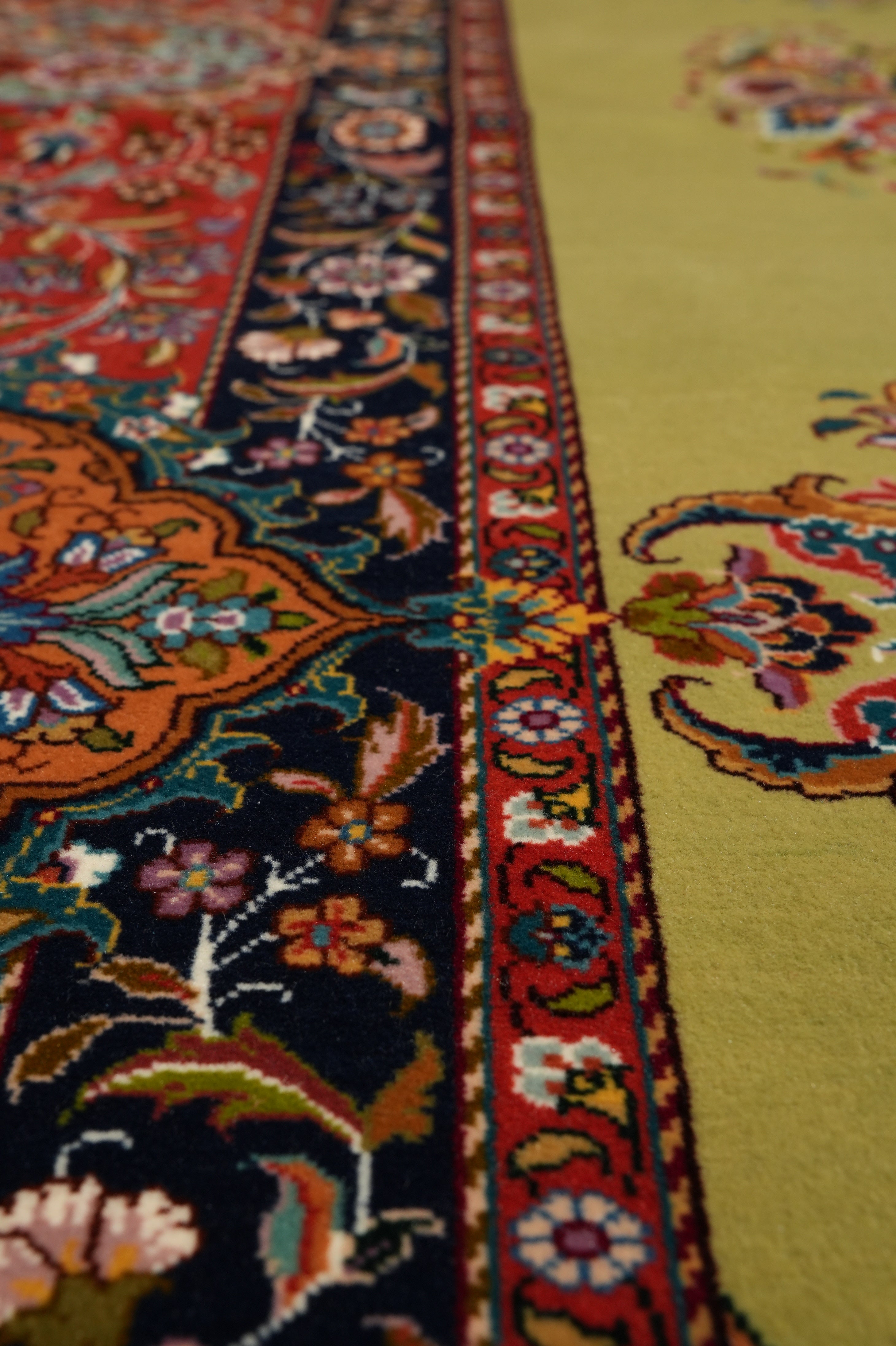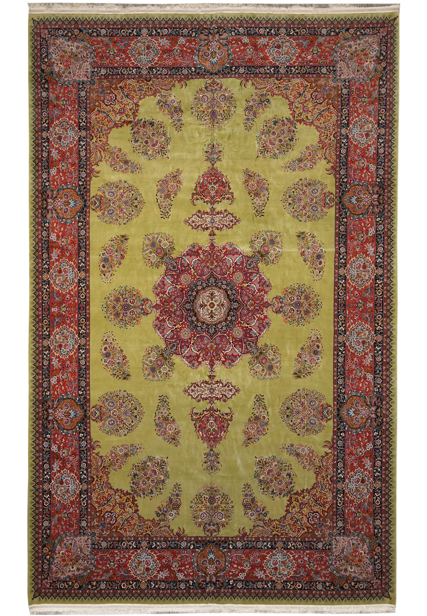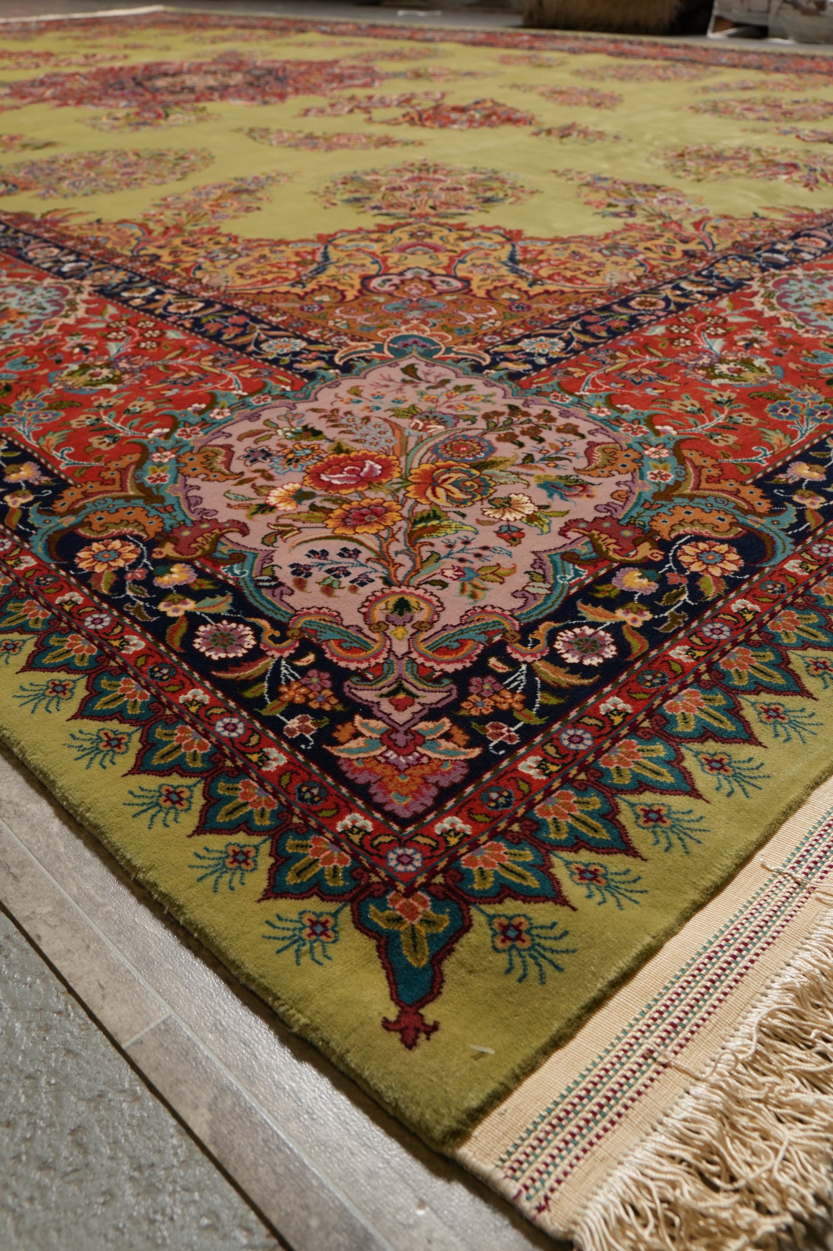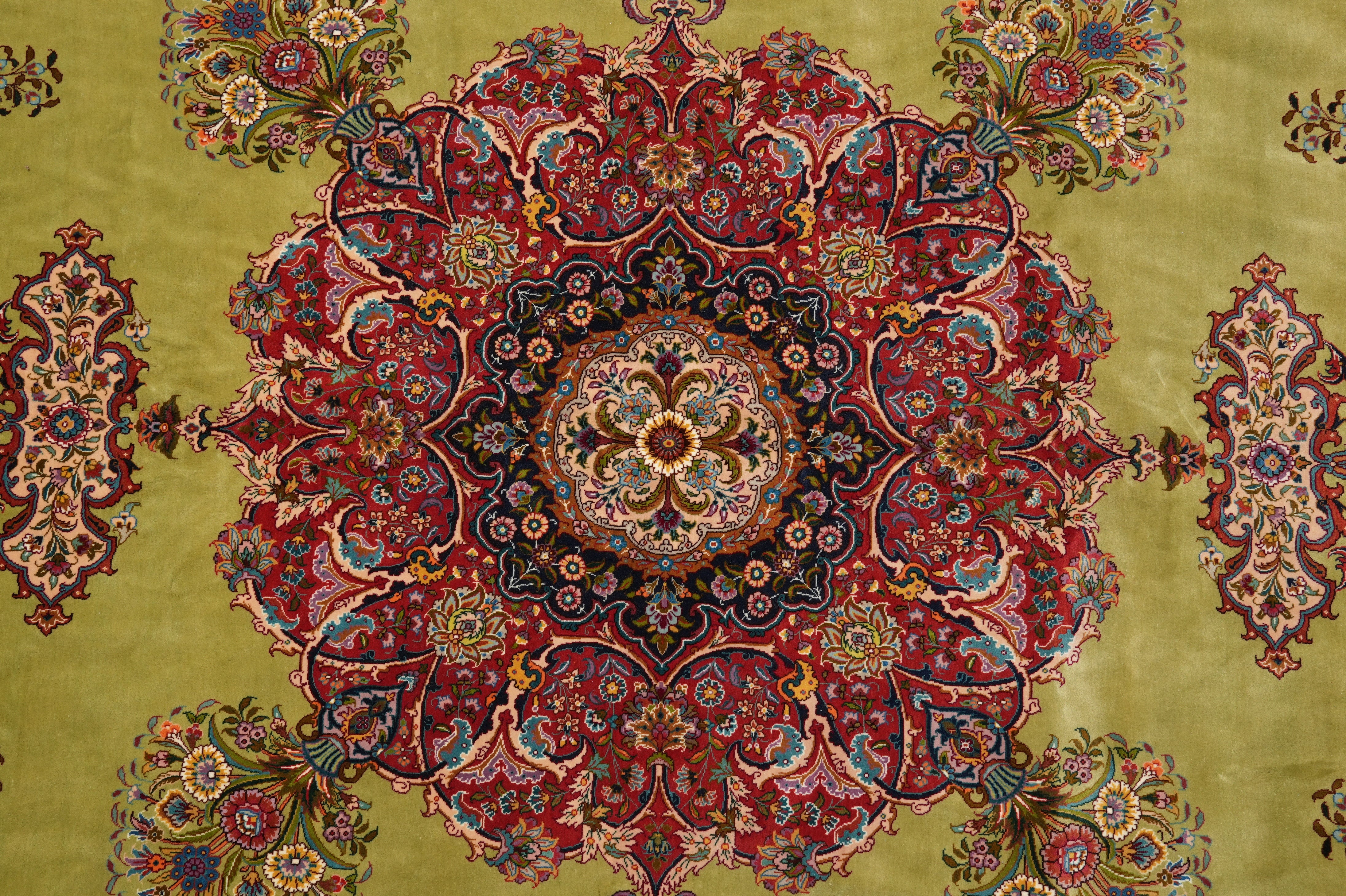 11.2 x 17.6 Fine Persian Tabriz Rug Wool and Silk on Silk 500 KPSI Green #F-4492