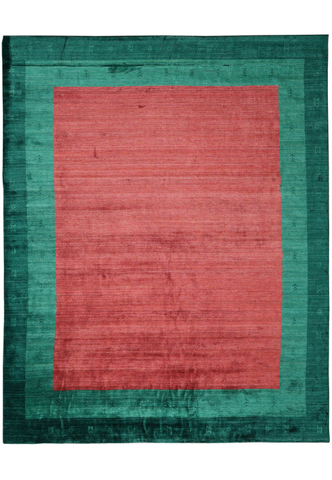 8 x 10 Handmade Wool Contemporary Rug – Solid Red with Green Accents (F-4519)