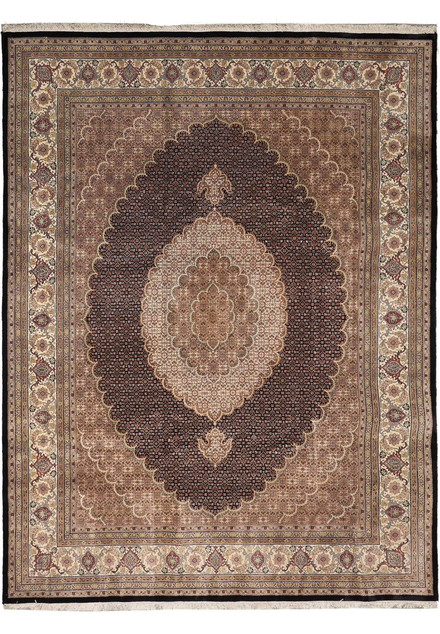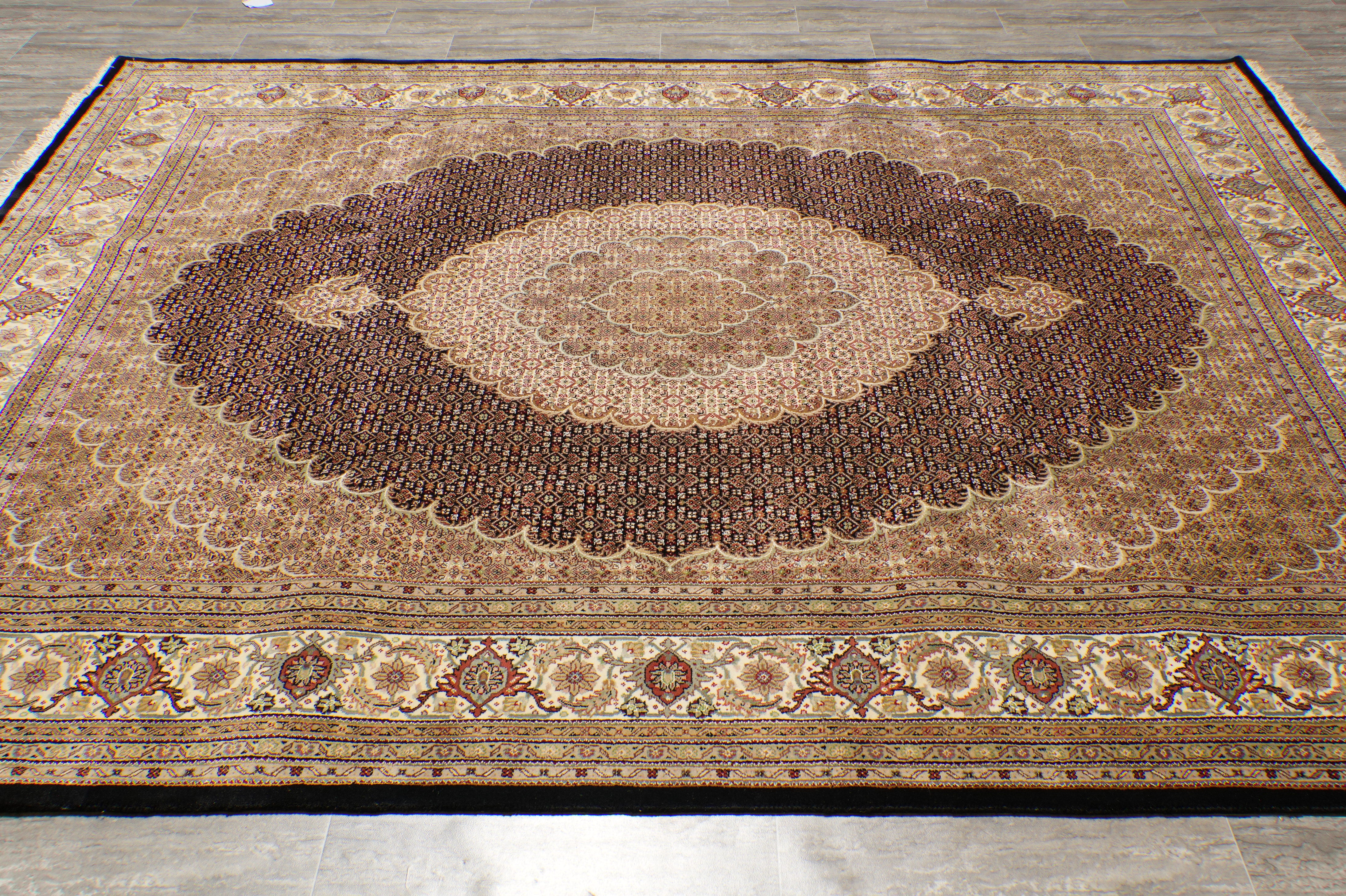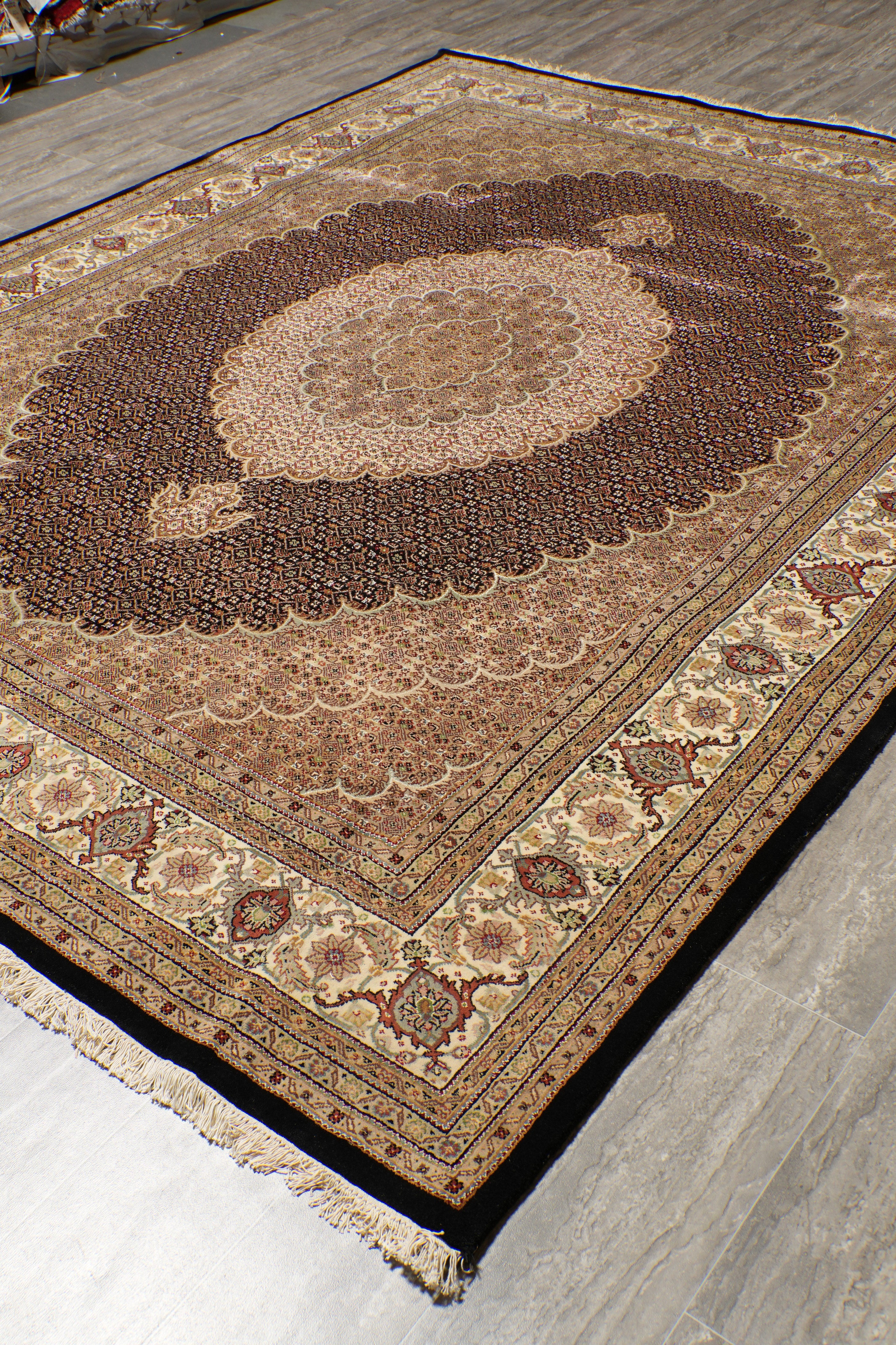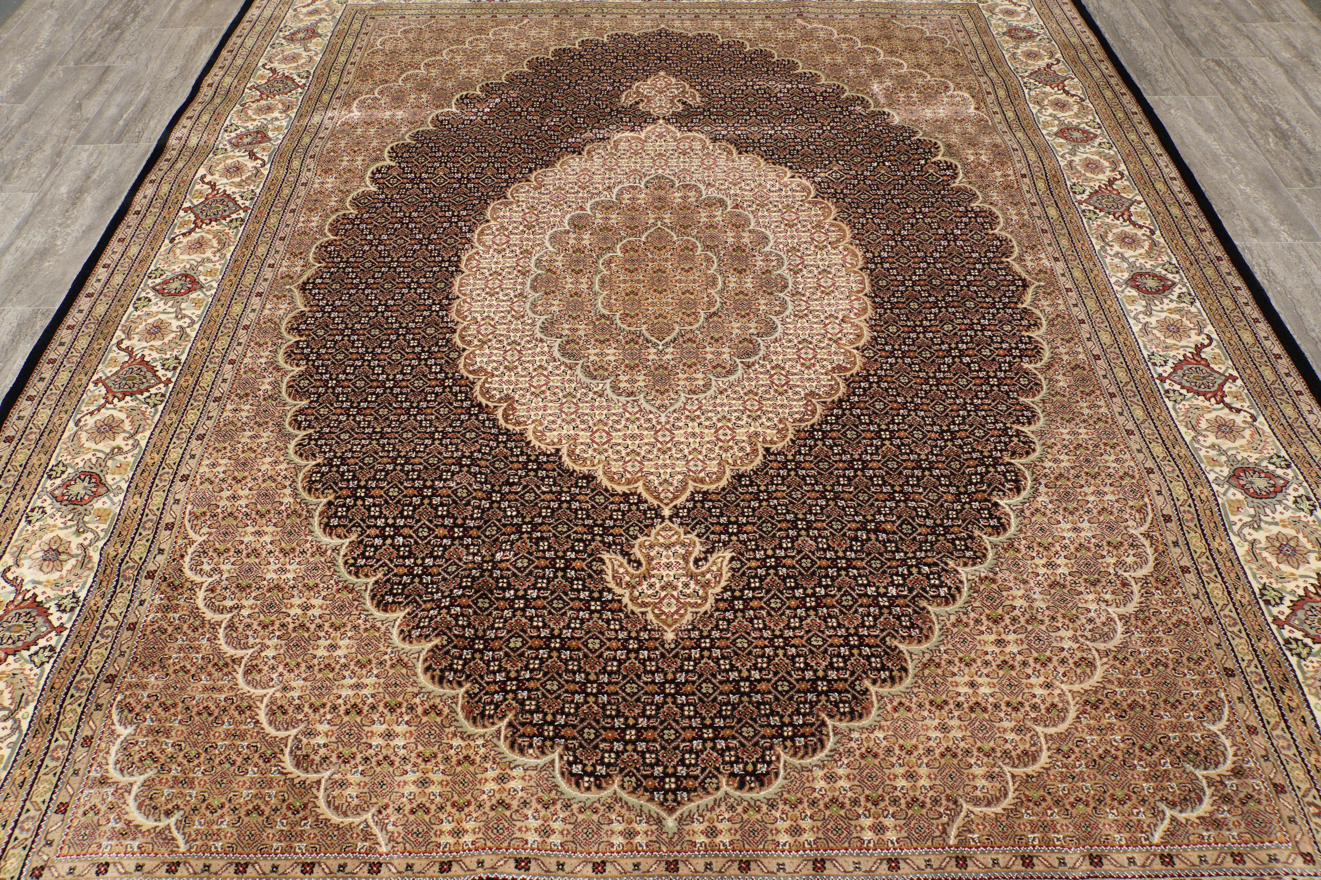 8 x 10.2 Black Tabriz Mahi Quality Handmade Rug #F-4476