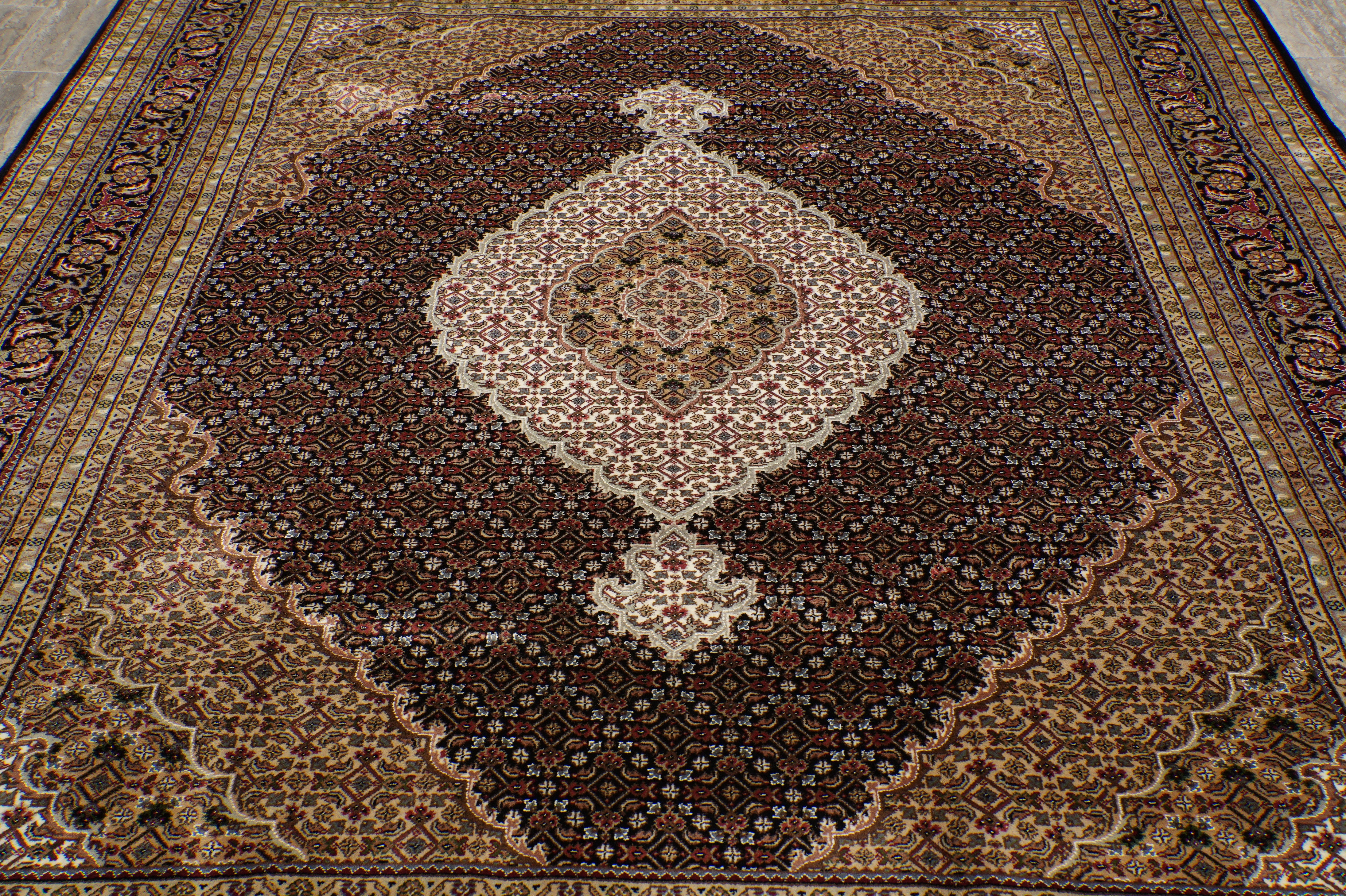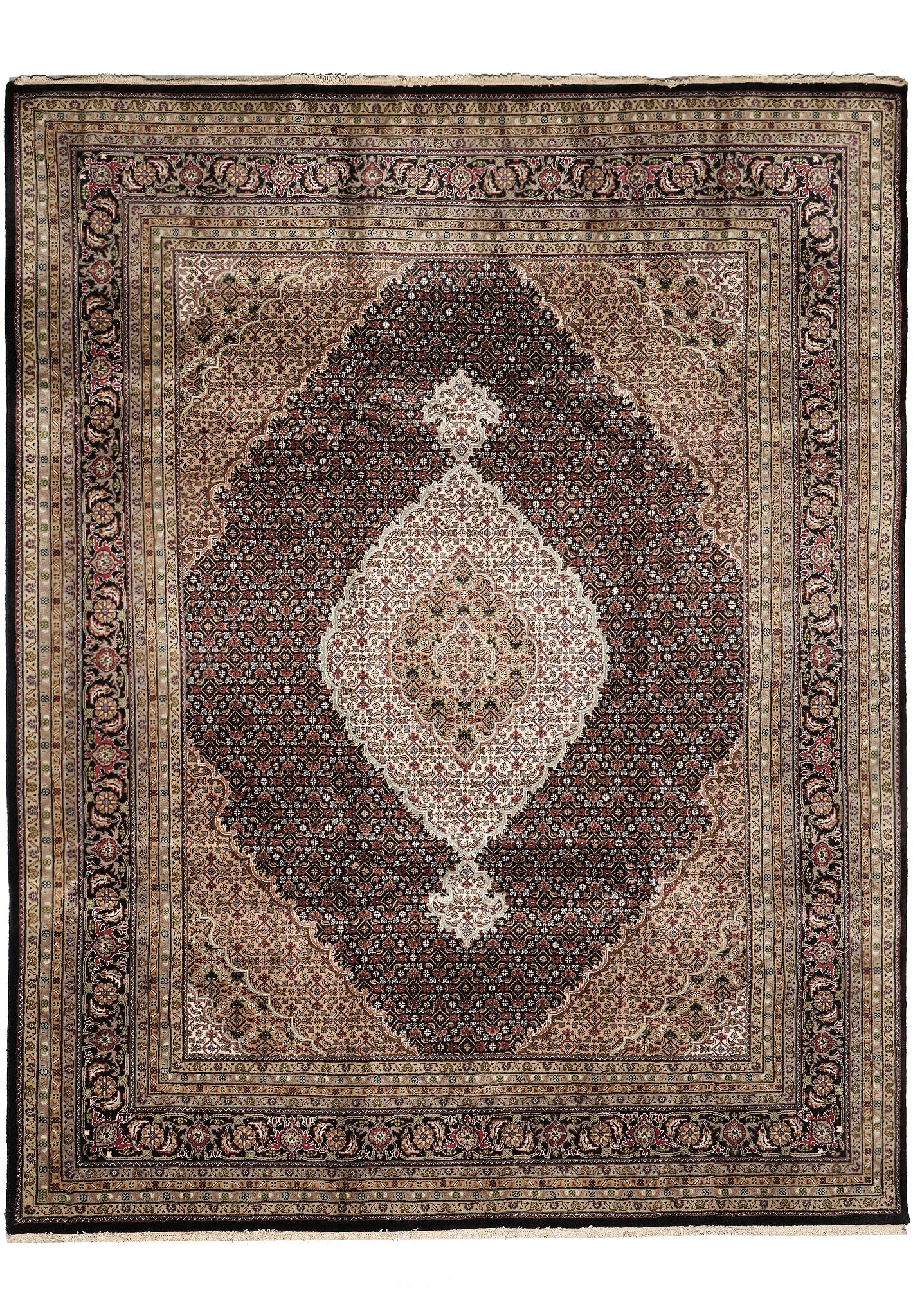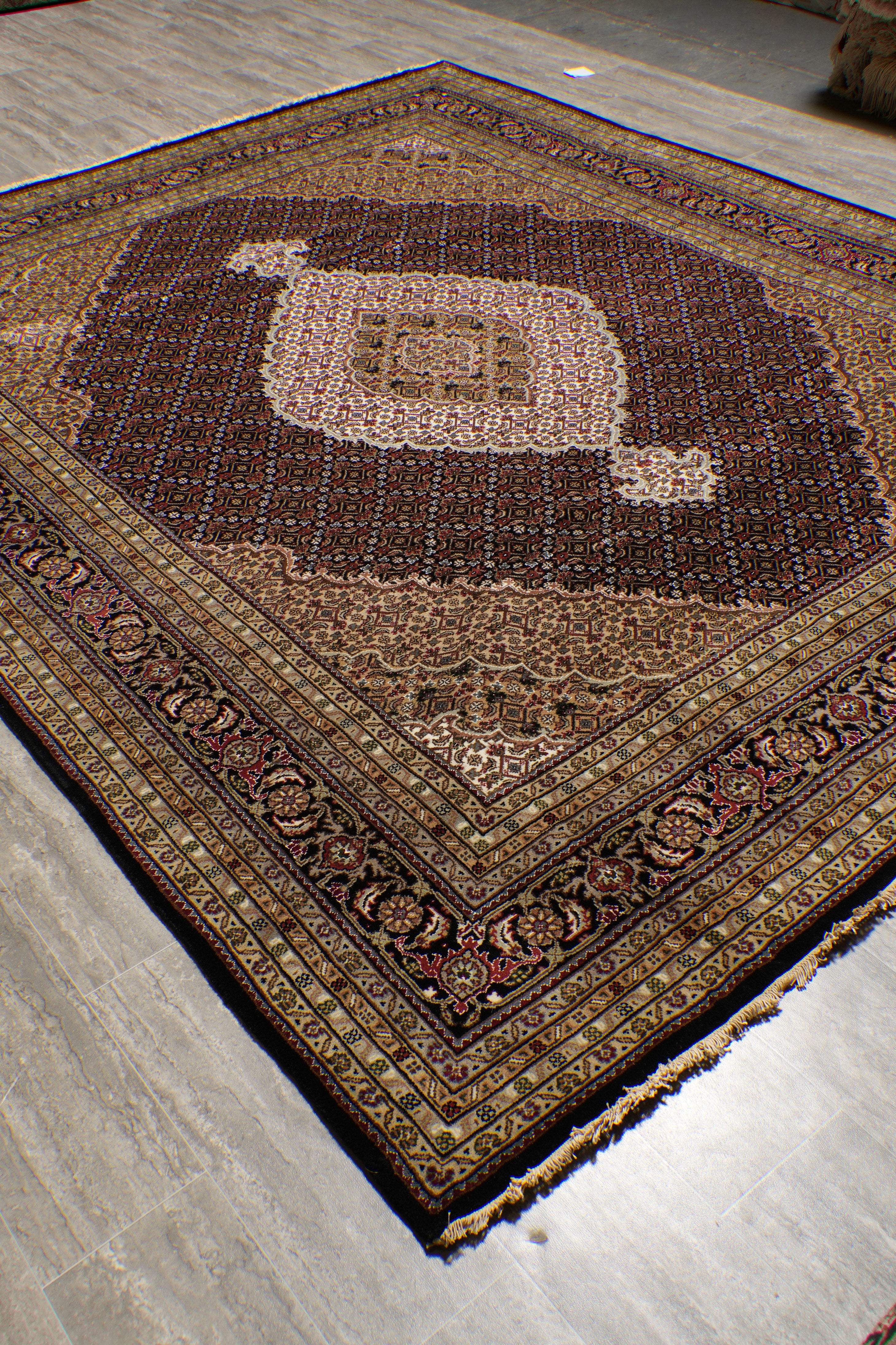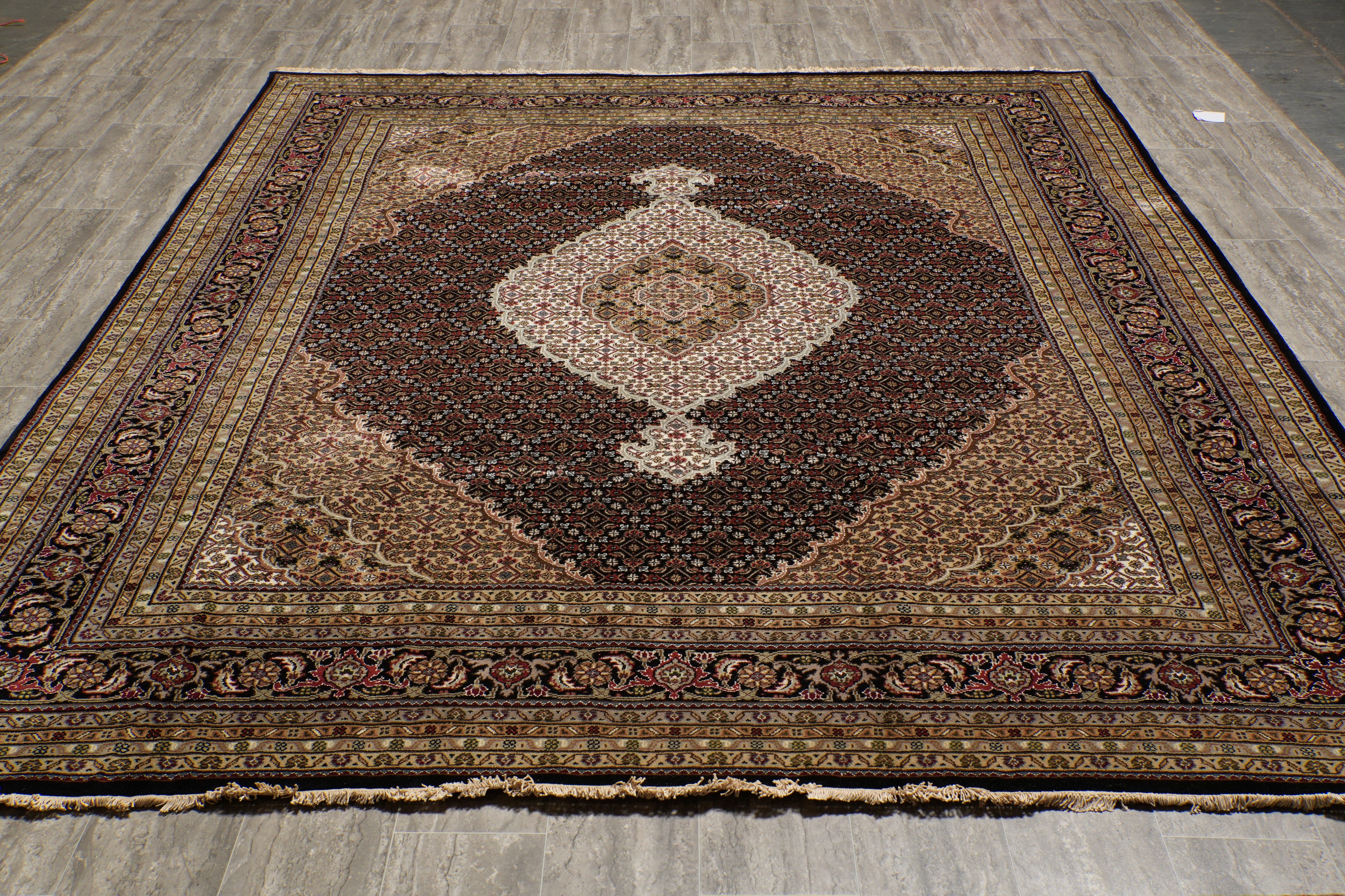 8.1 x 10.1 Black High Quality Wool And Silk Hand-Knotted Area Rug #F-4477