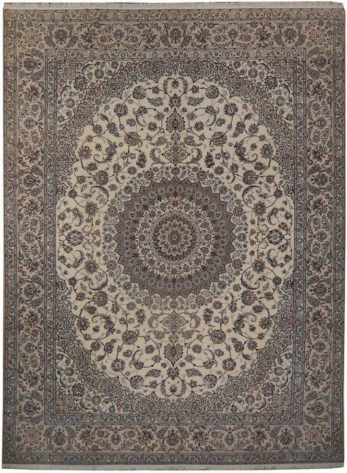 10 x 13.4 Persian Ivory Light Green Rich Cultural Kashan Rug 25664