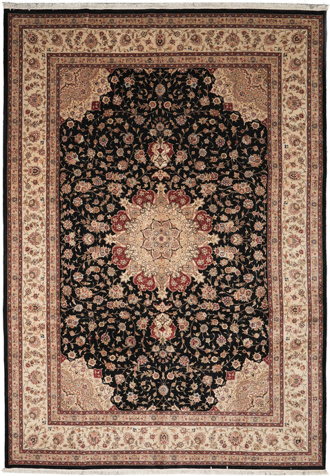 9.9 X 13.9 Quality Wool and Silk Sino Tabriz Rug Black#PIX-10029