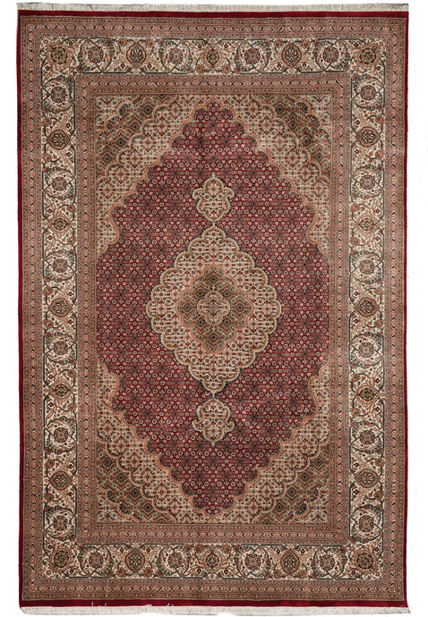 6.8 x 9.8 Rich Ruby Red Wool and Silk Quality Handmade Tabriz Mahi Carpet #PIX-25767