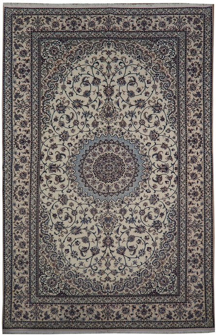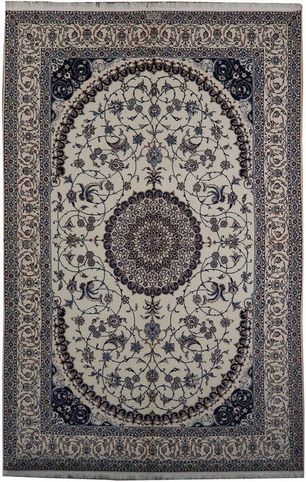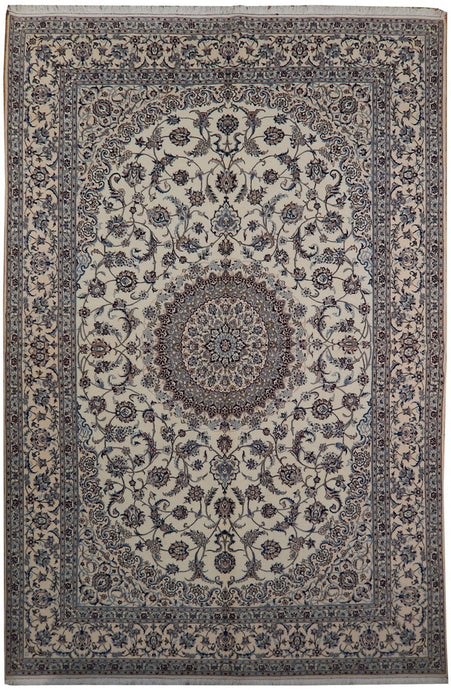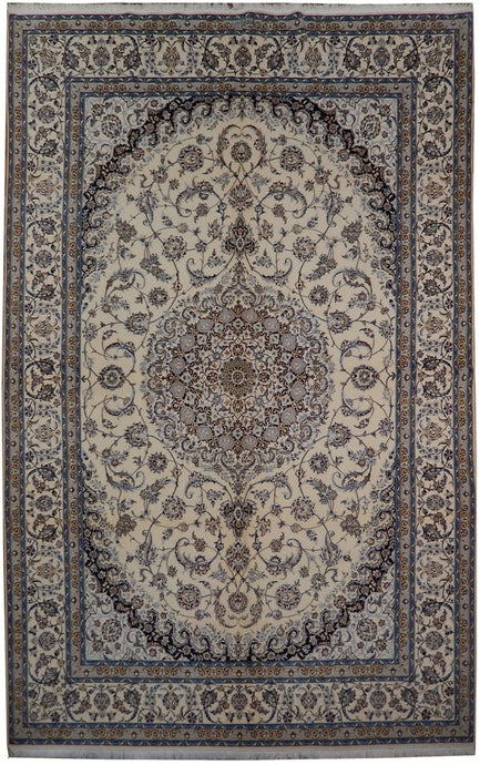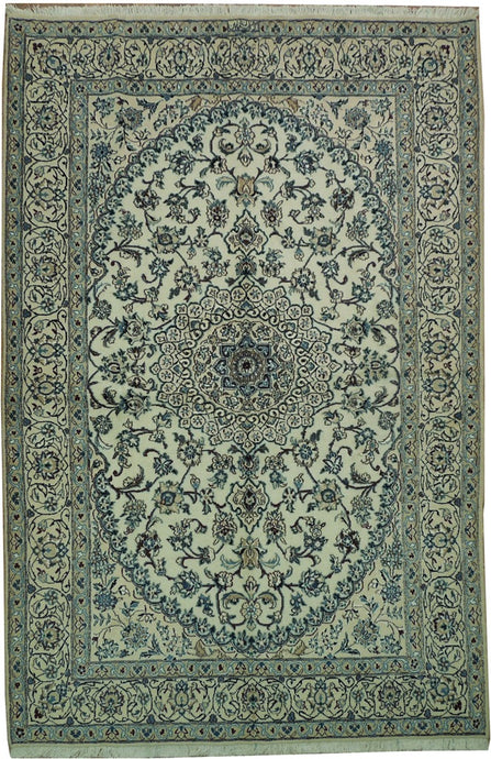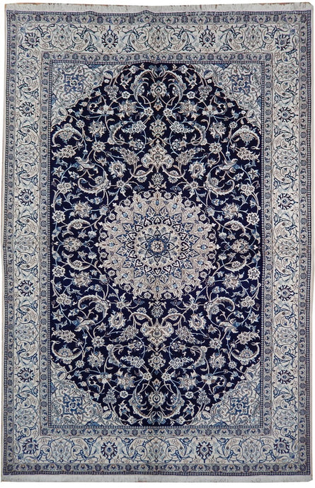 6.10 x 10.2 Authentic Persian Nain Wool and Silk Rug Handmade Iran Blue #PIX-22020