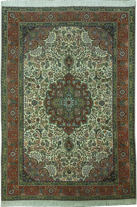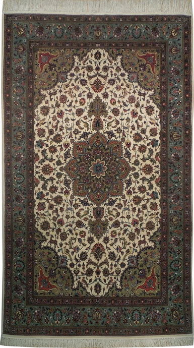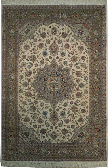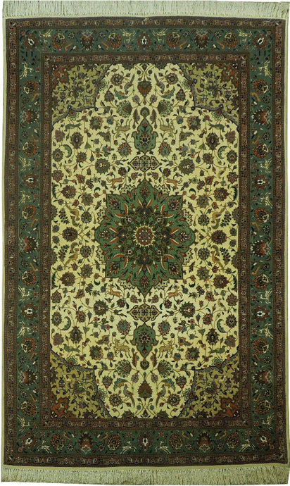 5 x7 Authentic Persian Mahi Tabriz Fine Rug Wool and Silk 400 KPSI #F-4371