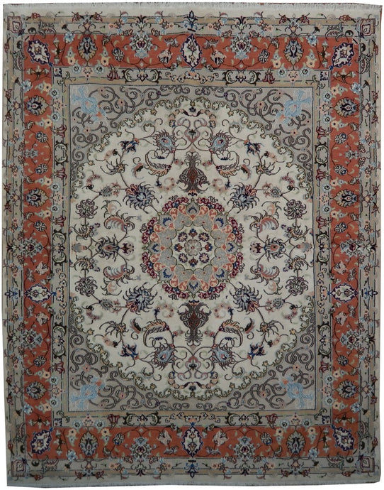8.1 x 10 Rust Mahi Tabriz High Quality Handmade Wool And Silk Rug #F-4462