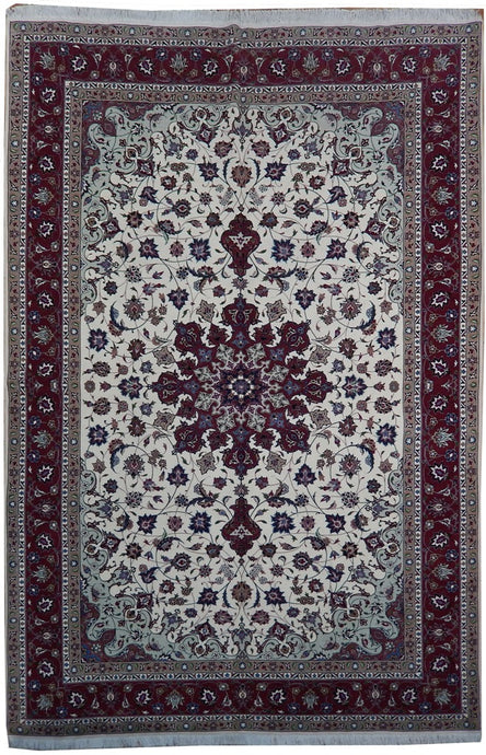 6.7 x 10.2 Signed Authentic Persian Esfahan Rug Wool and Silk 500 KPSI Genuine Iran #PIX-21983