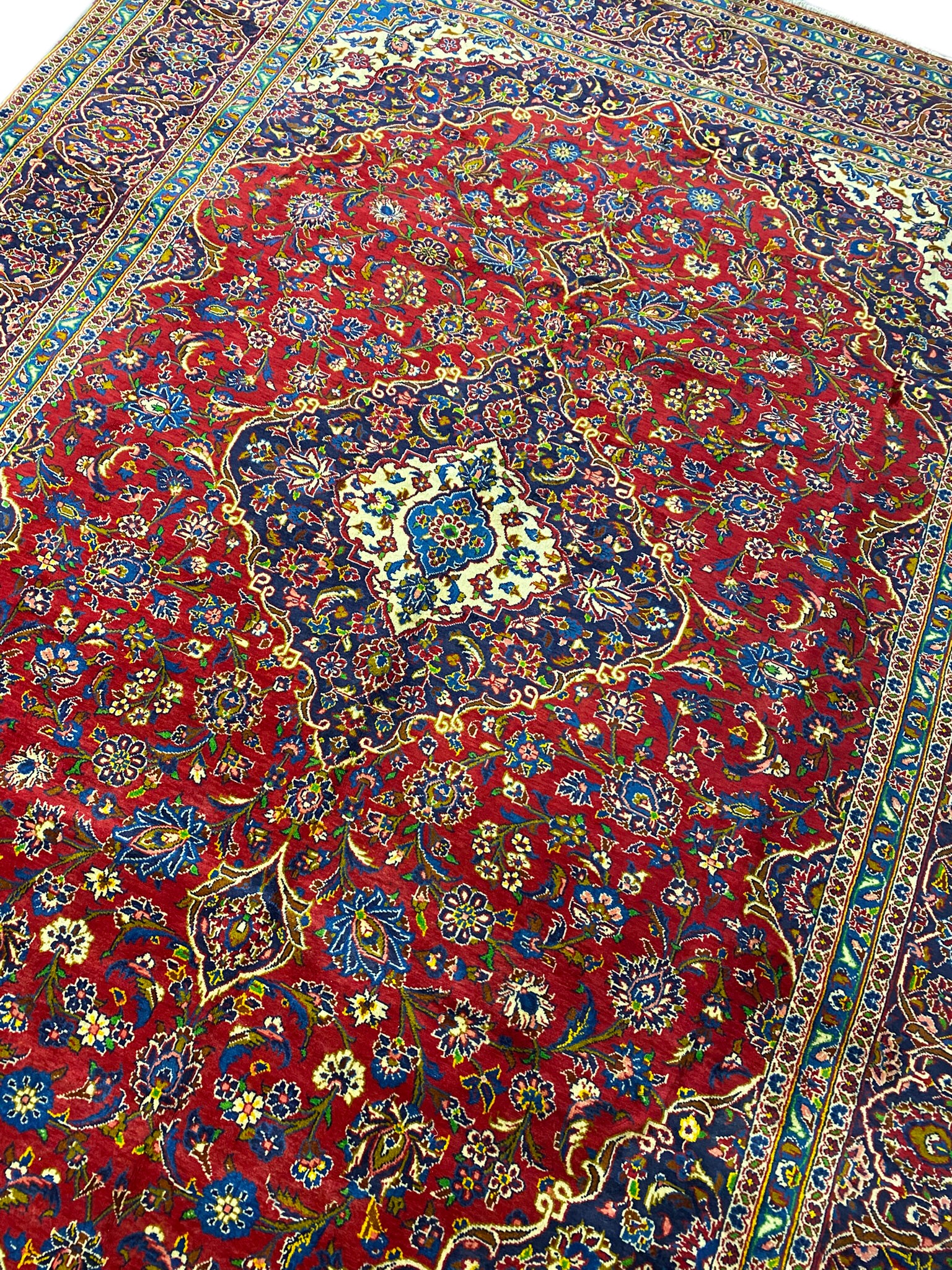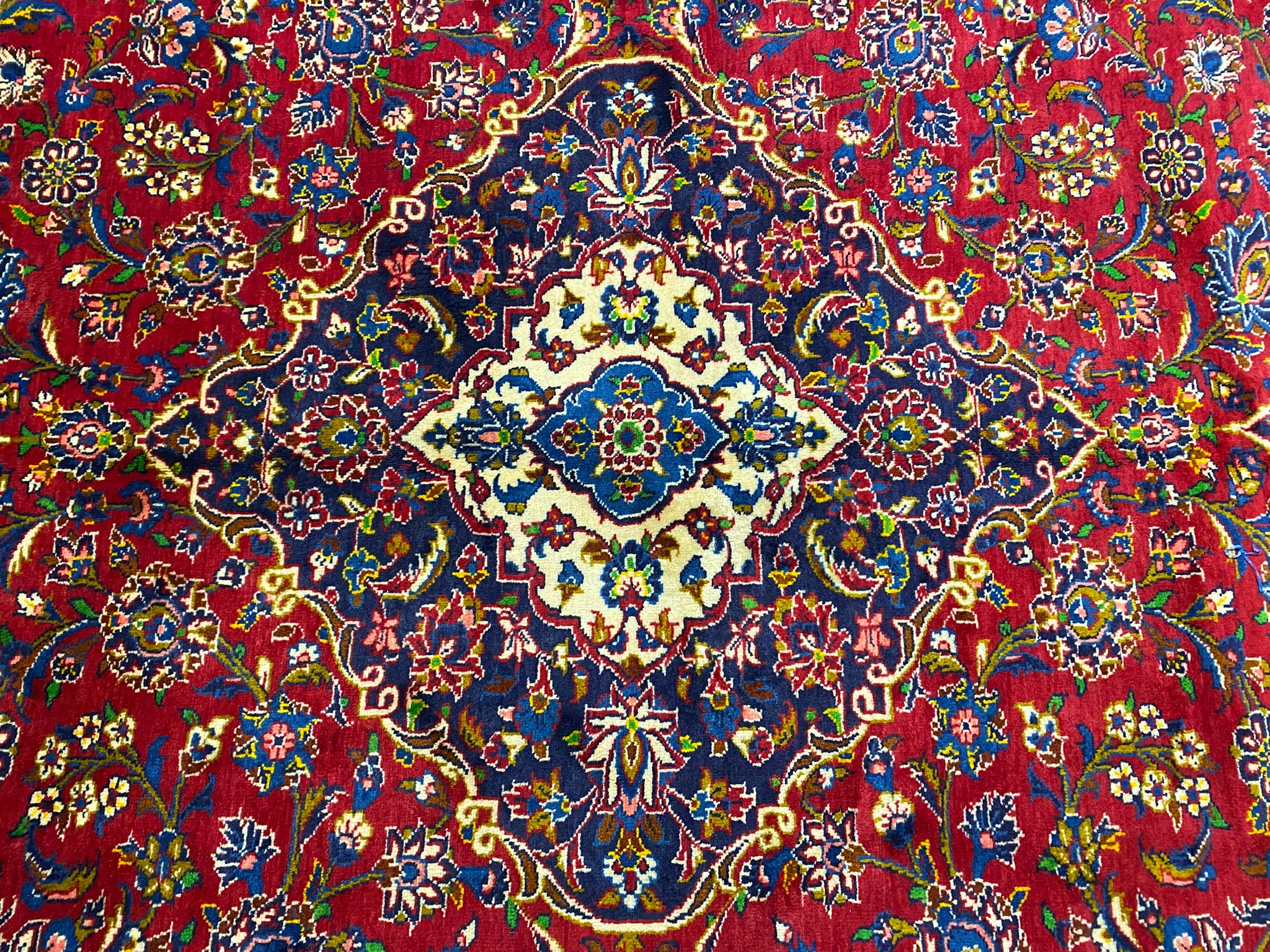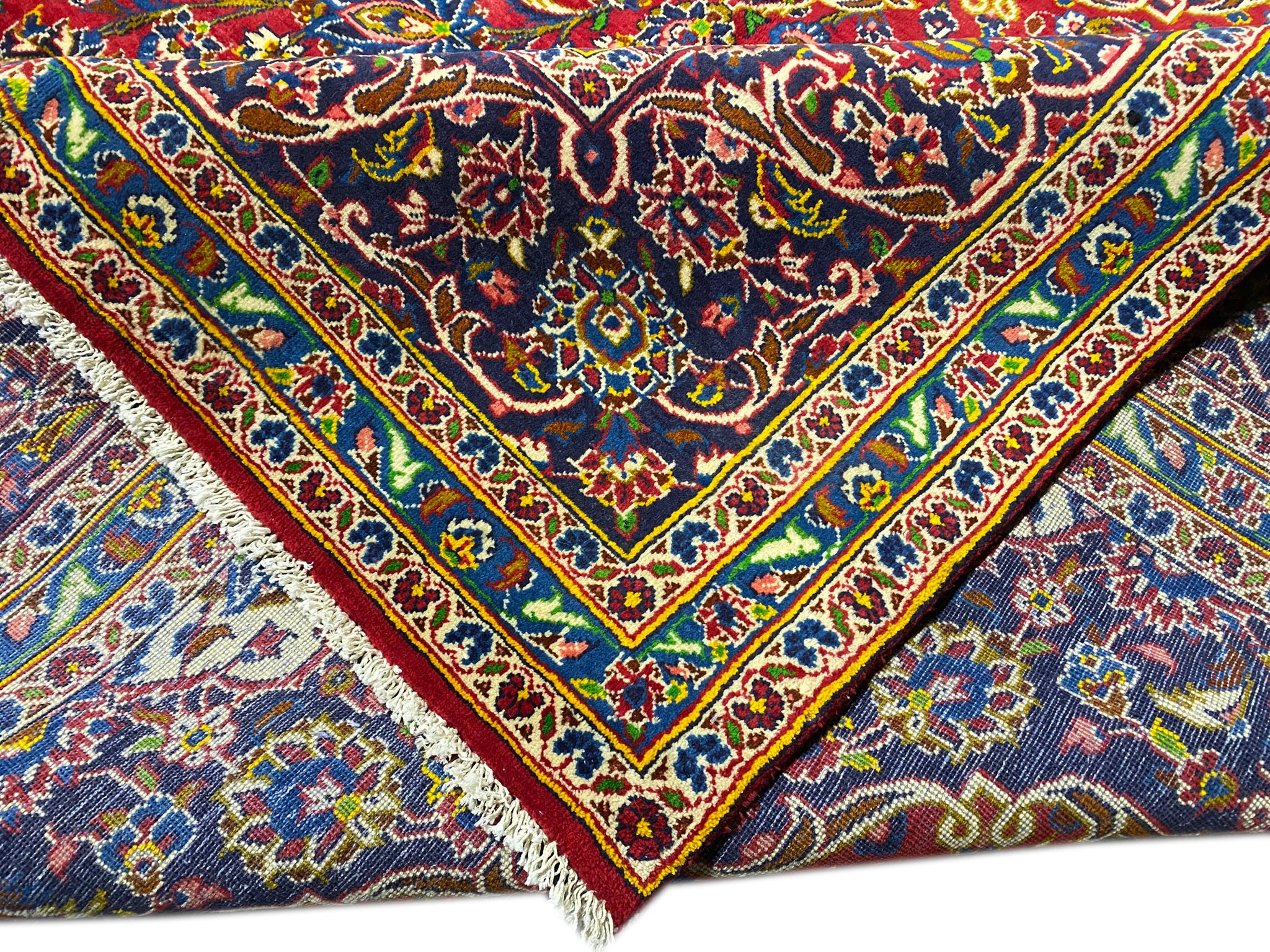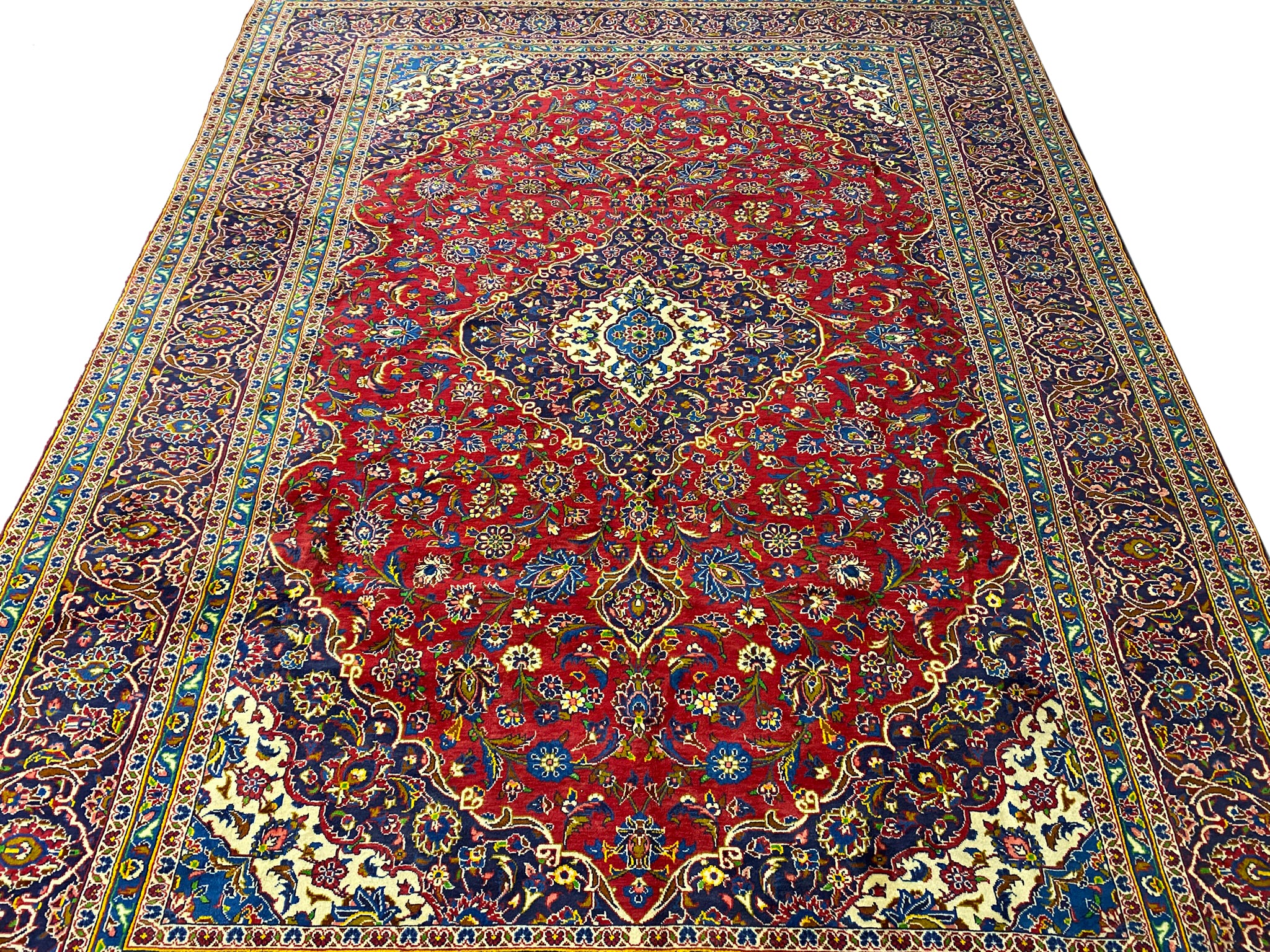 Measuring generously at 10' x 13', it commands attention as a statement piece in your living room or bedroom. Elevate your décor with the allure of Persian tradition and indulge in the luxury of this Red Persian Kashan Rug.