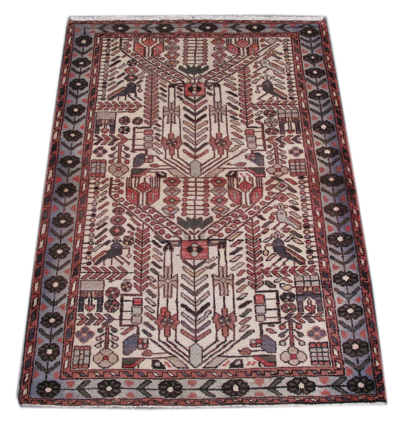 3.6 x 5 Persian Tribal Rasht Rug Primitive Birds #PIX-82752
