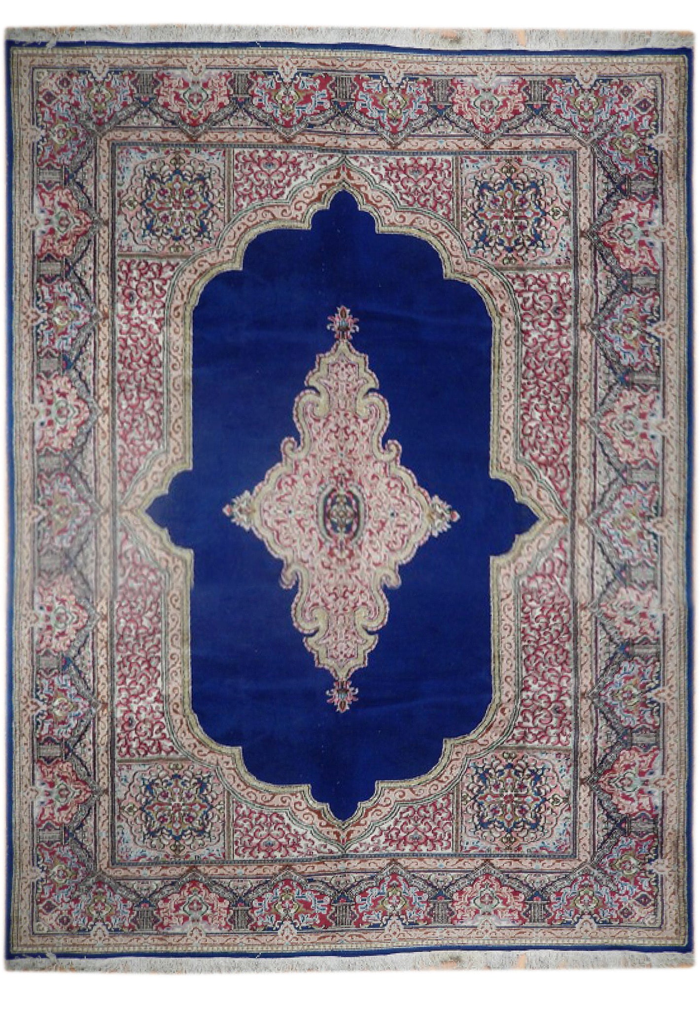 A Persian Kerman handmade rug is a marvel of craftsmanship and history, originating from the Kerman province in Iran, known for producing some of the finest carpets in the world. These rugs are prized for their high-quality wool, intricate designs, and rich colors, often featuring floral motifs, medallions, and elaborate borders.