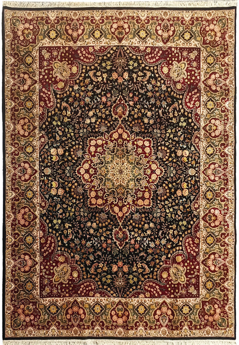 8.6 x 11.8 High Quality Wool and Silk Tabriz Rug BLACK BURGUNDY #F-6379