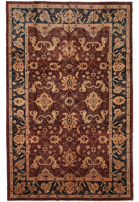 9.6 x 14.2 Fine Quality Wool Chobi Peshawar Zigler Rug Burgundy #PIX-14299
