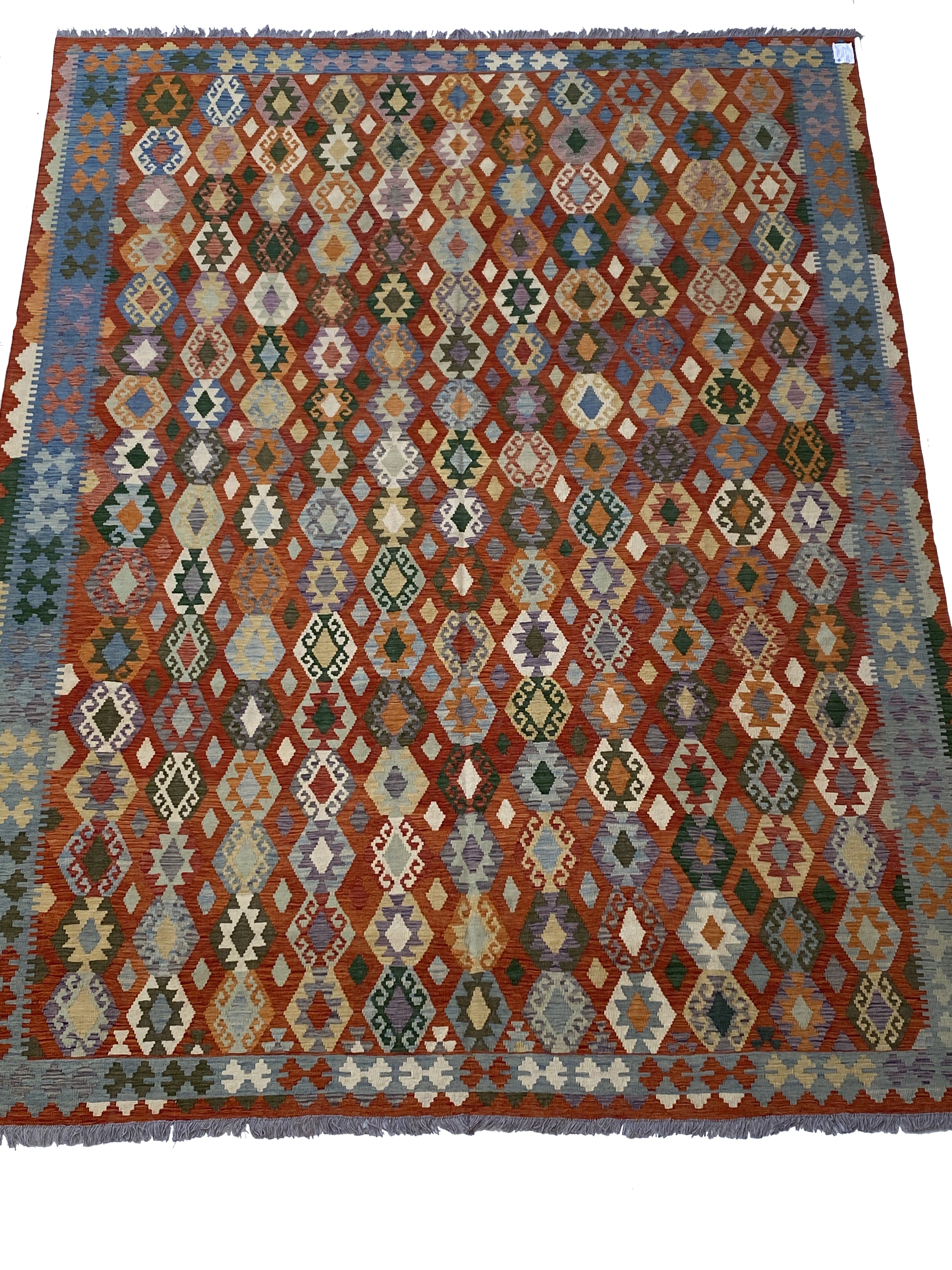 Constructed from durable wool and cotton fibers, this kilim rug not only adds visual appeal but also promises lasting quality. Its generous size makes it ideal for defining larger areas, while the intricate patterns and rich textures infuse your home with a touch of timeless elegance and charm.