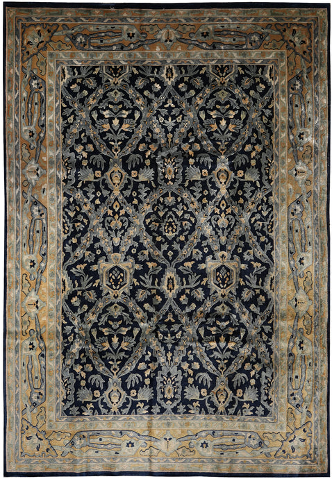 10 x 13.6 Handmade Nepali Rug Dark Blue and Gold #F-4409