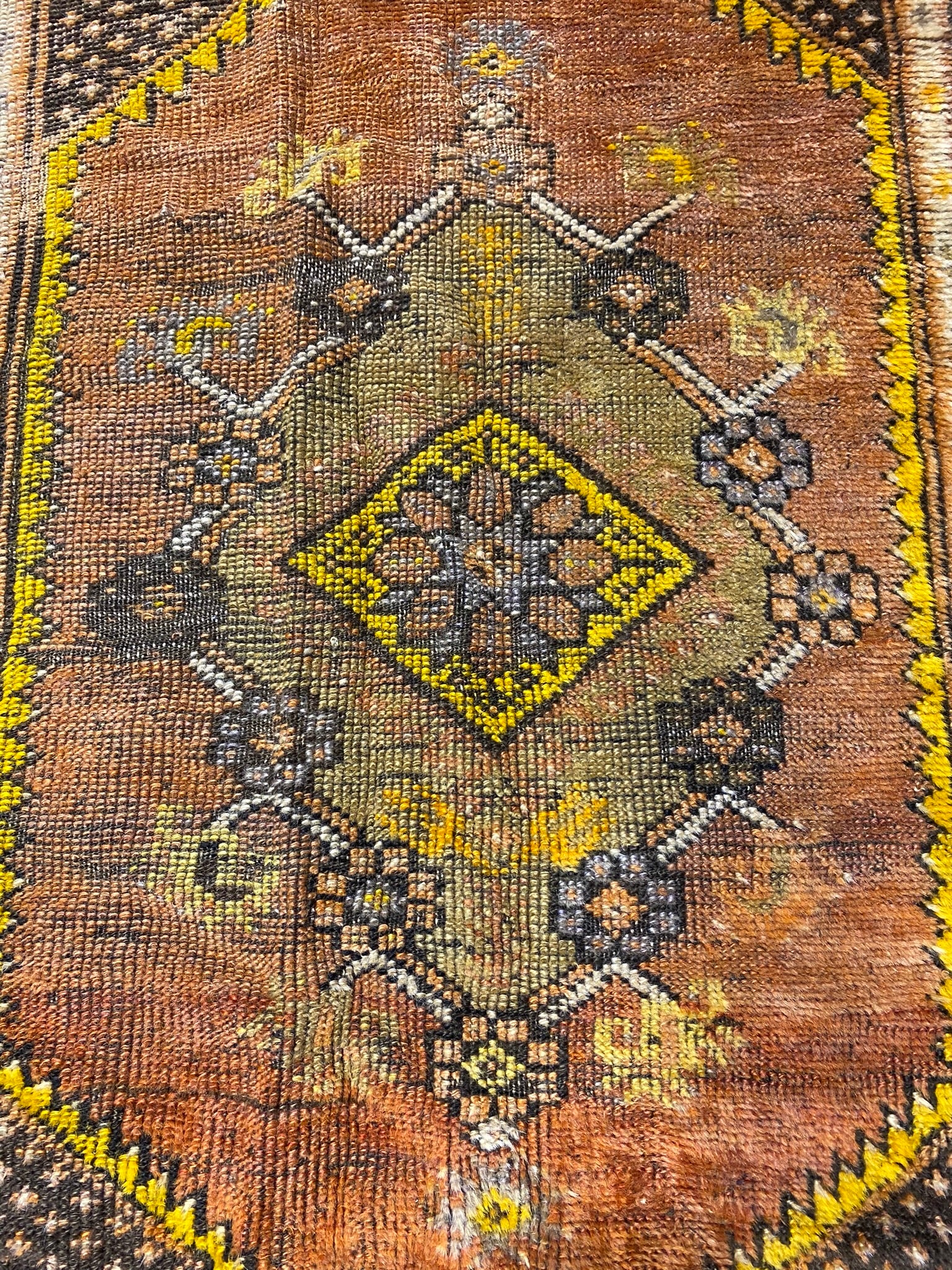 The compact 3' x 5' size makes Geometric Patterns rug ideal for use as a decorative accent in entryways, small living spaces, or as a wall hanging to showcase its historical significance. This Kordistan Tribe rug is not just a functional piece but a beautiful representation of tribal heritage and craftsmanship, adding warmth and character to any home.