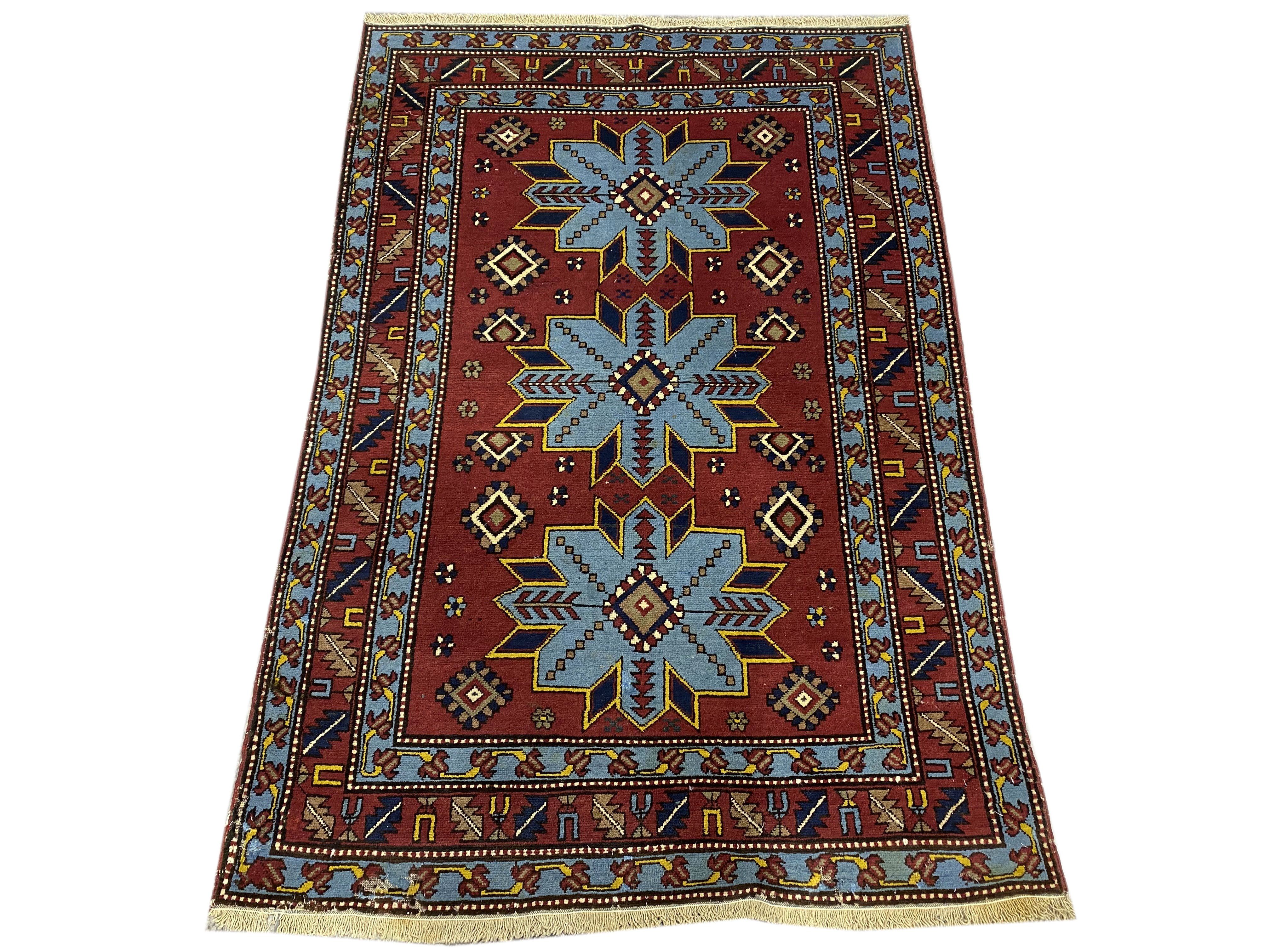 Transport your space to a bygone era with this exquisite 4' x 6' Red Orange Antique Russian Kazak rug from the early 1900s. Crafted with meticulous precision, this vintage masterpiece boasts a striking combination of red and orange hues, woven into intricate geometric patterns that speak volumes of traditional Russian craftsmanship.