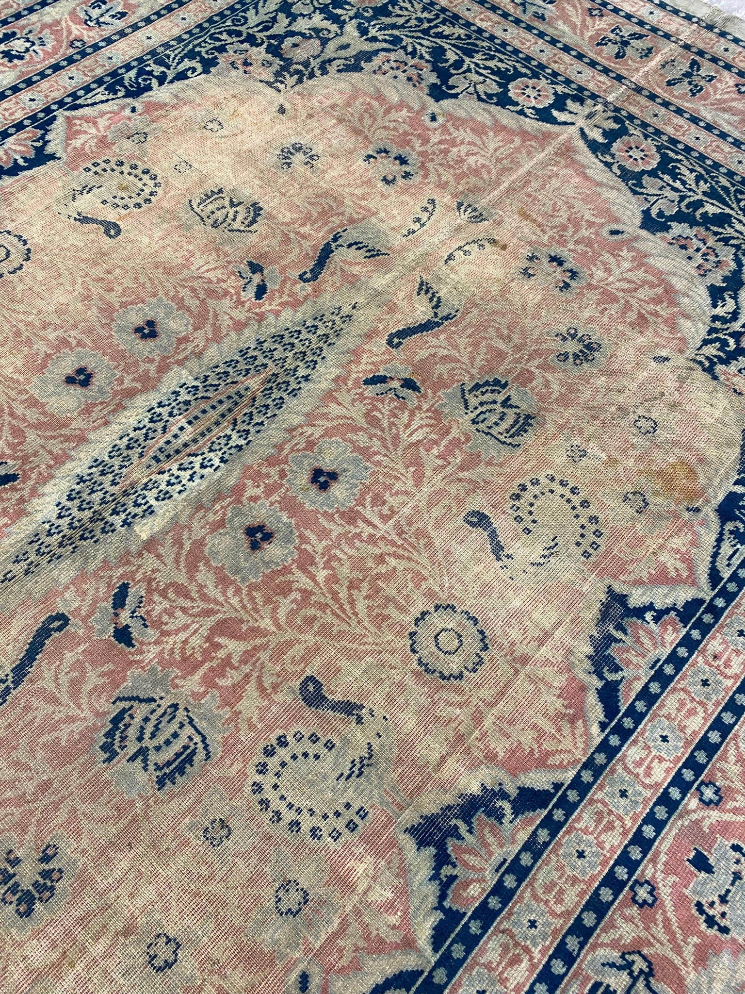 Discover the timeless beauty of the 9' x 12' Antique Handmade Qaisari Rug, a masterpiece that brings a touch of regal elegance to any space. This exquisite carpet is a rare find, showcasing the unparalleled craftsmanship of the Qaisari weaving tradition, known for its intricate designs and rich history. Hand-knotted by skilled artisans using the finest wool, this rug boasts a luxurious texture and durability that will last for generations.