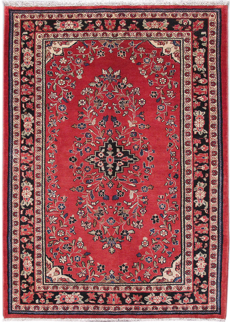Harooni Rugs SKU#PIX-82824 Weave: Hand-Knotted Free Shipping- We want you to LOVE your rug. If you don?t love it, just return it!!! This rug is handcrafted by talented Persian artisans. With traditional Persian designs woven throughout, it elegantly blends shades with a silk-like pile. Ideal for promoting inviting feel, this appealingly soft rug instantly becomes a versatile masterpiece for your room. Exact dimensions of this rug are 4´ 3" x 6´ 11"
