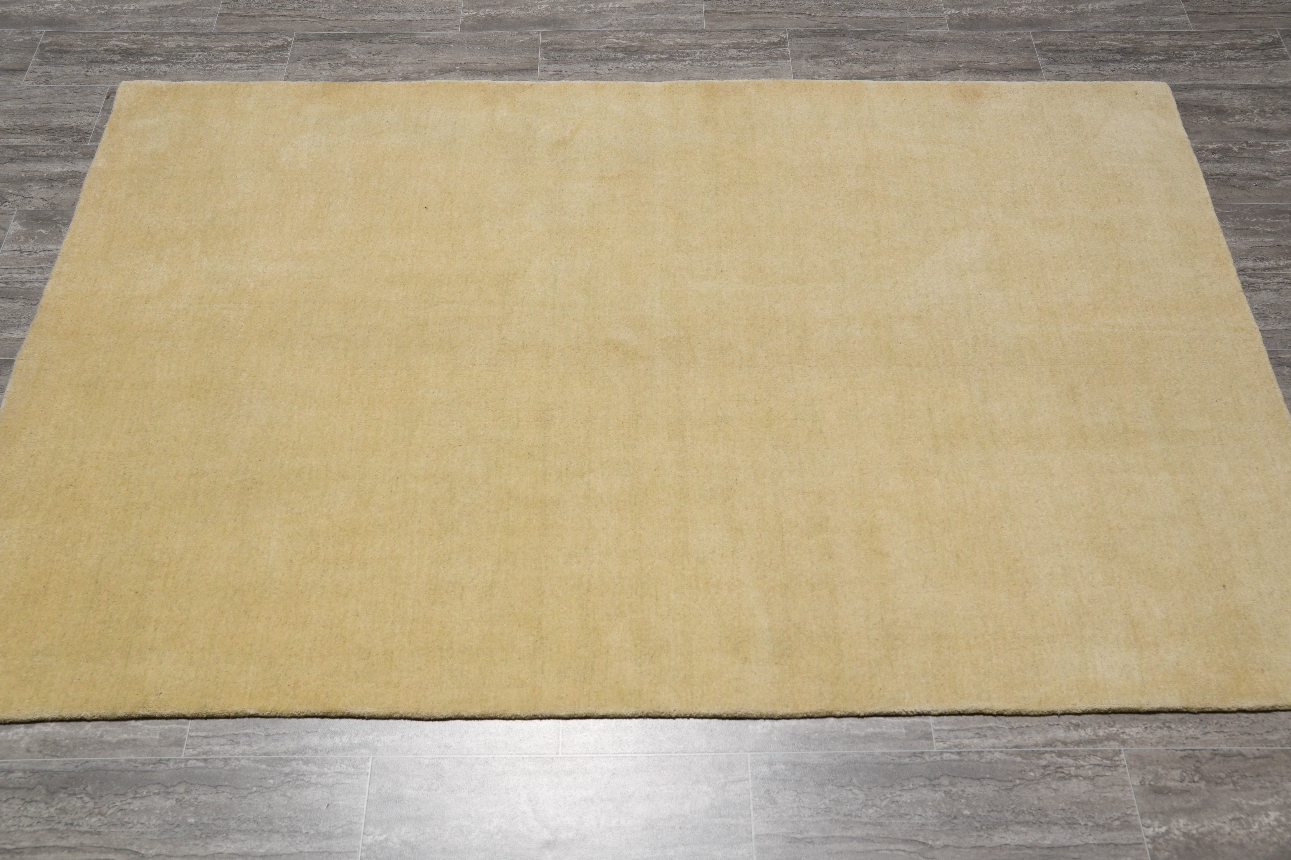 Light yellow is the main color, with subtle shades of cream and beige present in the rug.