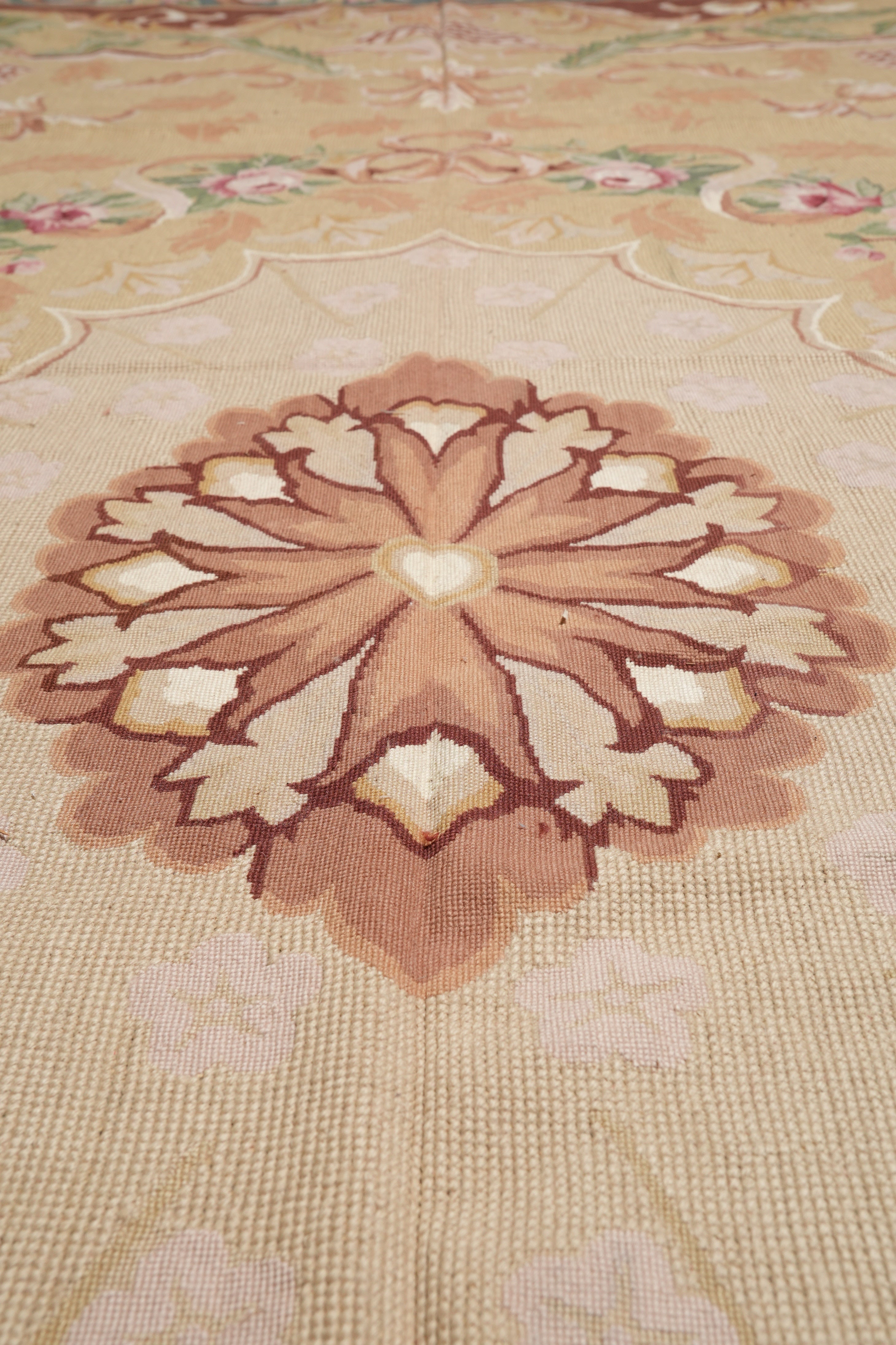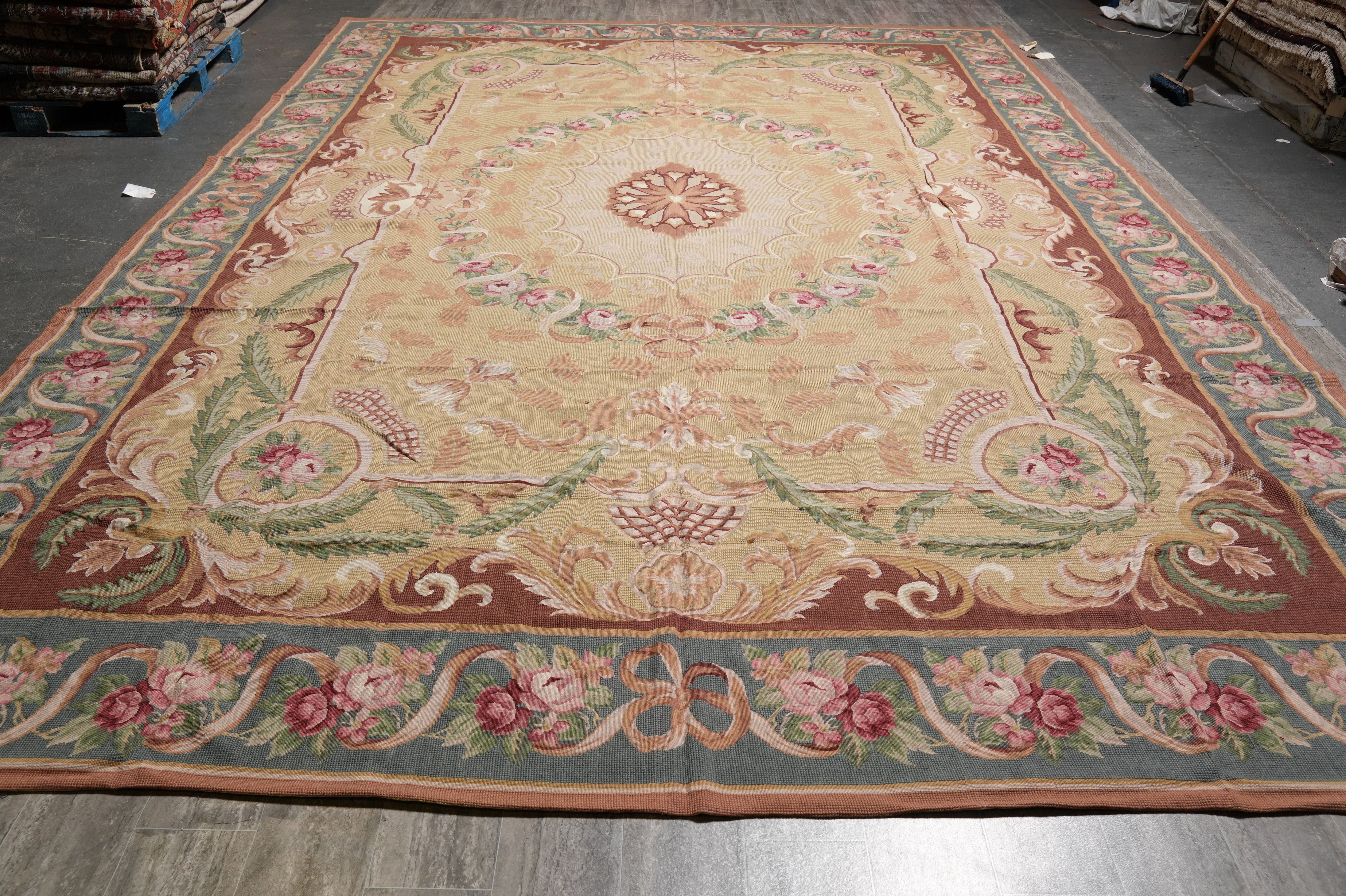 Introducing our stunning 12' x 17' Beige Needlepoint Rug, a timeless masterpiece of elegance and craftsmanship. Handcrafted with meticulous care, this rug exudes sophistication and charm, adding a touch of refined luxury to any space. The soothing beige hue complements a variety of decor styles, from traditional to contemporary, while the intricate needlepoint design lends an air of classic beauty.