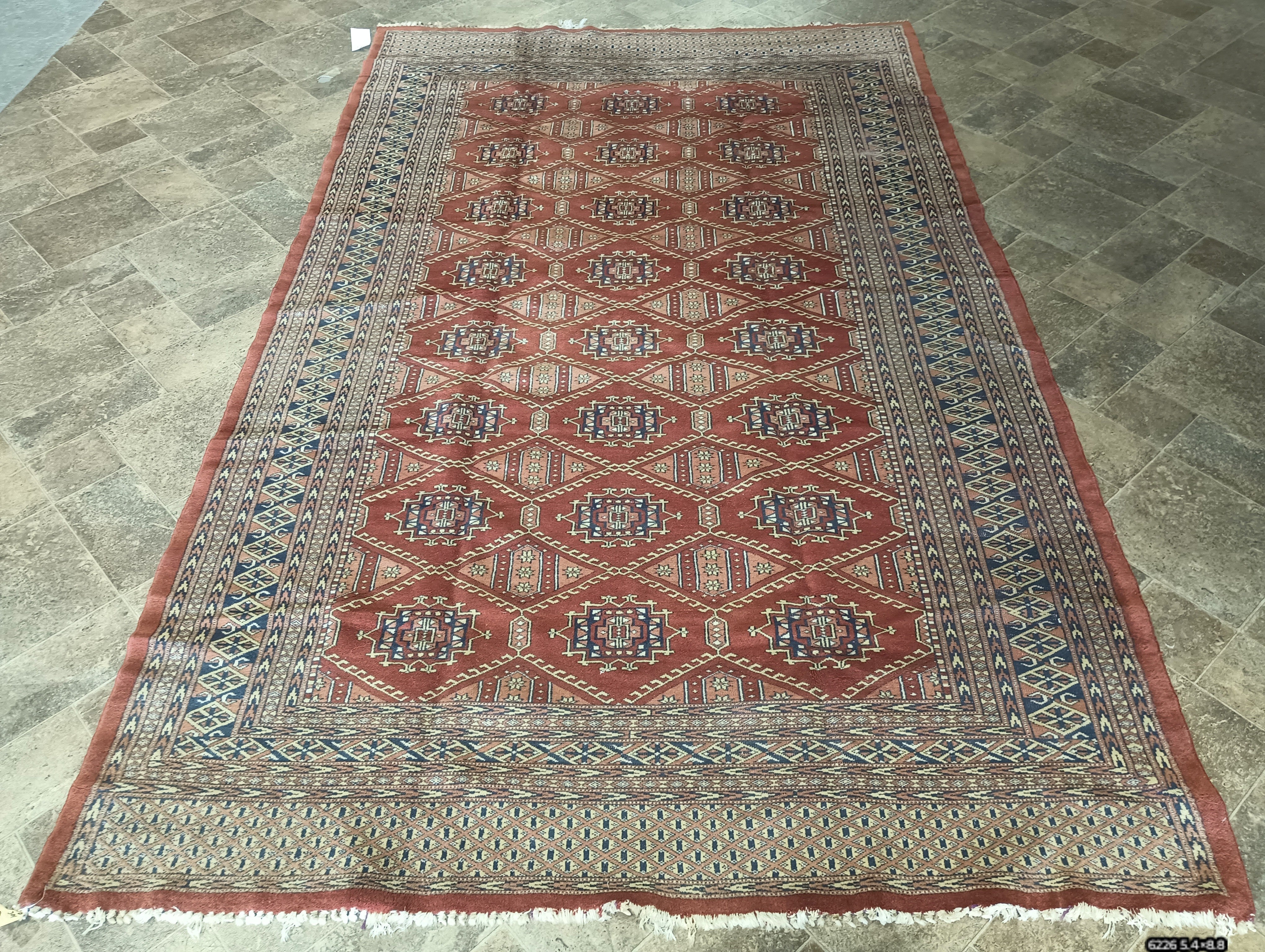 Introducing the 5' x 9' New Handmade Jaldar Bokara Rug, a masterpiece of geometric elegance and traditional craftsmanship. This exquisite rug features a mesmerizing array of geometric patterns, intricately handwoven to create a stunning visual effect. The Jaldar Bokara style is renowned for its rich cultural heritage and timeless appeal, making this rug a perfect addition to any sophisticated home. Crafted from high-quality wool, this rug offers both durability and a luxurious, soft texture underfoot. The natural wool fibers are resilient and long-lasting, making it an ideal choice for high-traffic areas such as living rooms, dining rooms, and hallways.