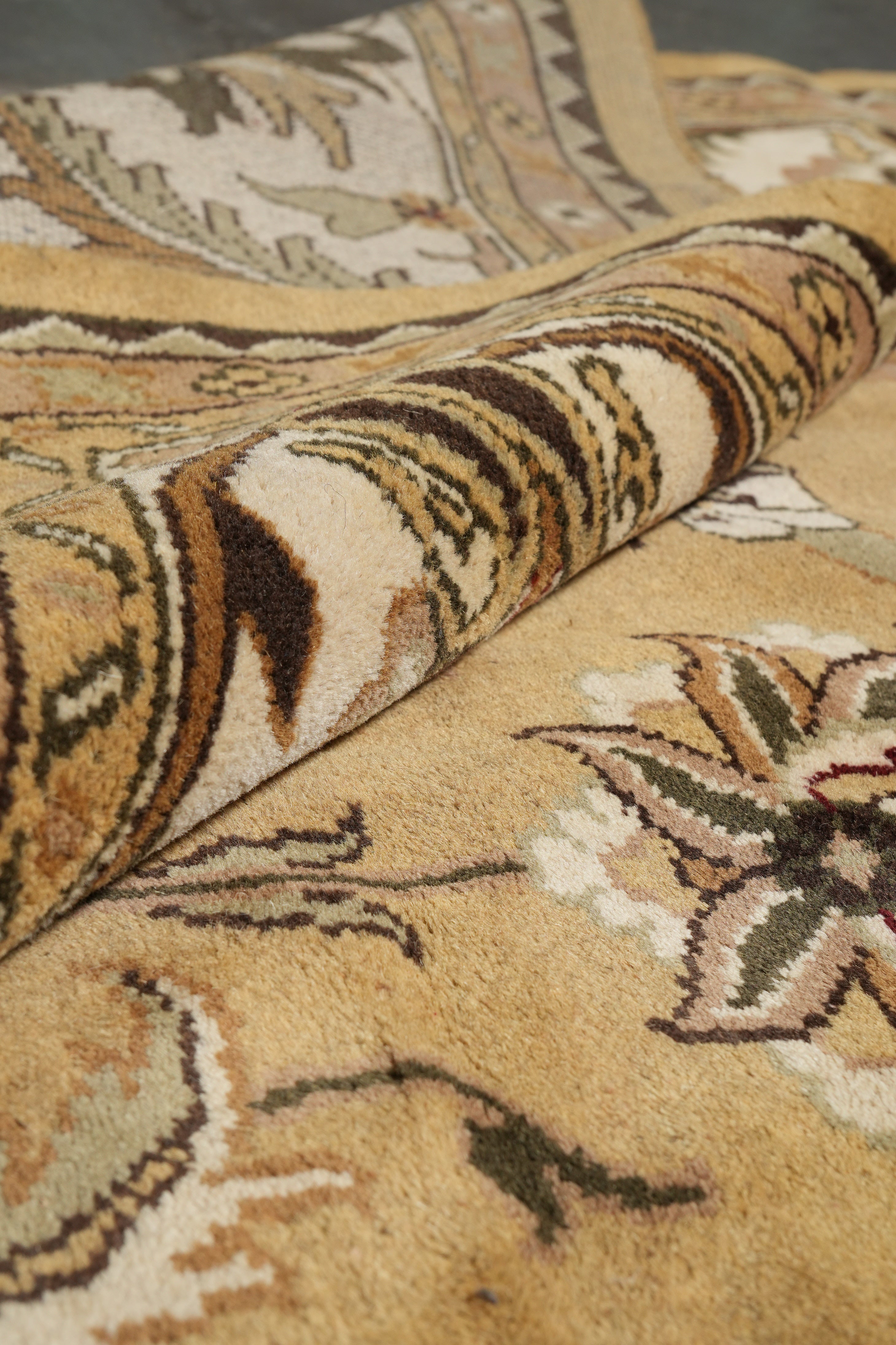 Woven from high-quality natural wool, this handmade rug features a dense, durable pile that is both soft underfoot and built for long-term use. The hand-knotting process gives the design remarkable clarity and texture, while natural dyes create rich, earthy tones with subtle variations that enhance its artisanal character.