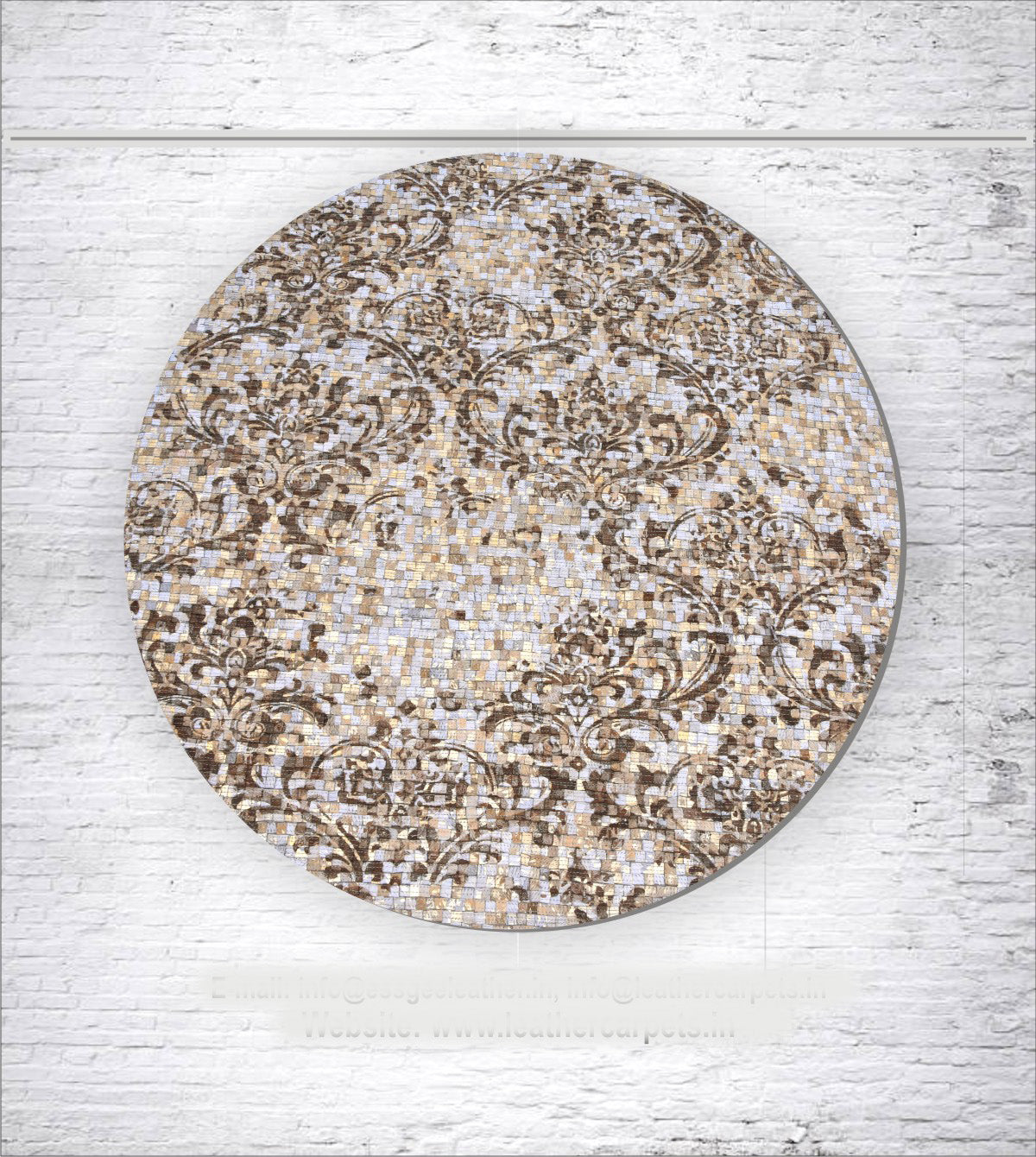 Luxury Round Damask Mosaic Genuine Leather Patchwork Carpet #20P-40129