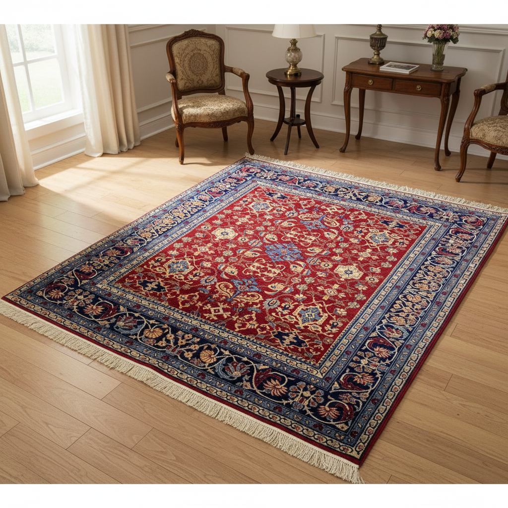 Its vibrant red color and intricate design bring a sense of warmth and refinement, making it an ideal focal point for living rooms, dining areas, or bedrooms. The 7' x 8' Red Sino Silk Rug combines traditional artistry with modern luxury, offering a versatile and stylish solution to elevate your decor. Experience the blend of opulence and durability with this exquisite silk rug, designed to enhance your home with its striking beauty and exceptional quality.
