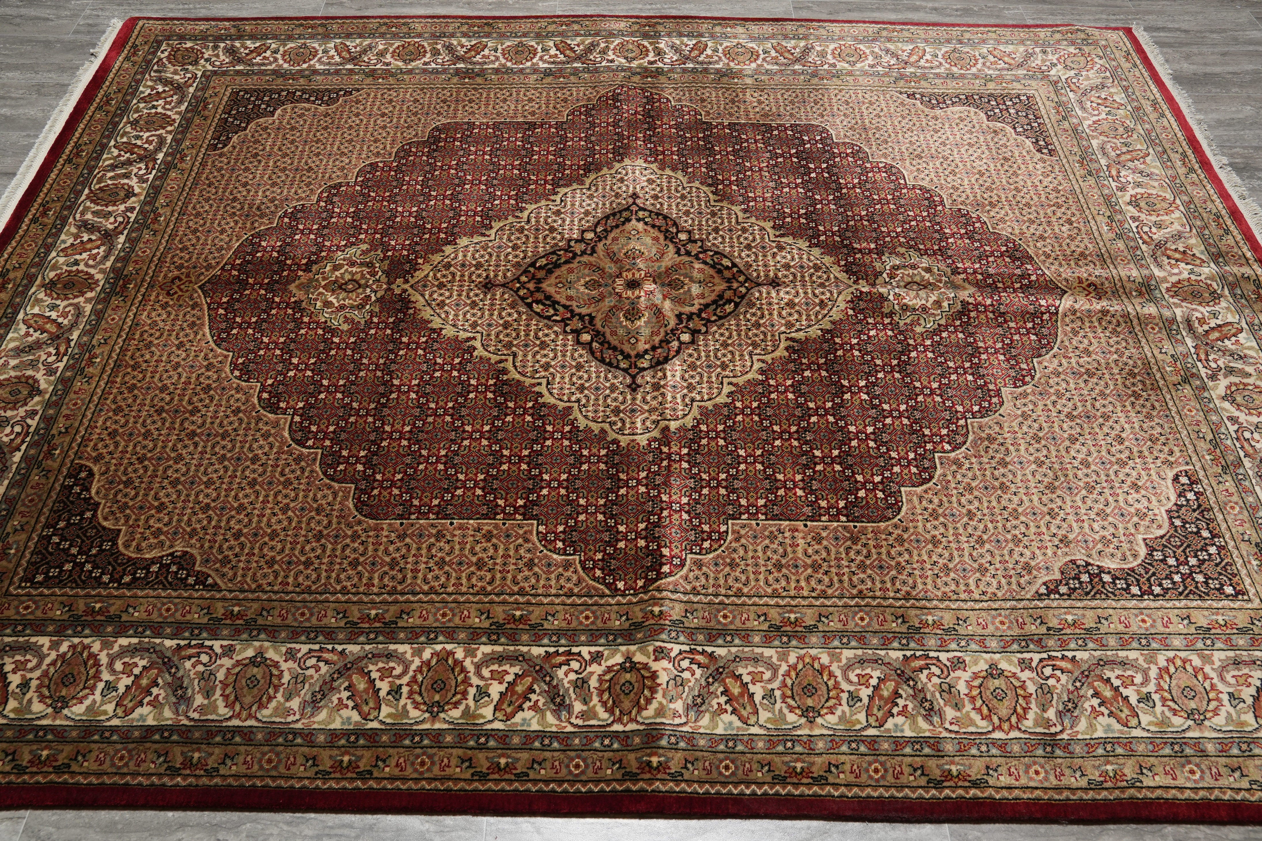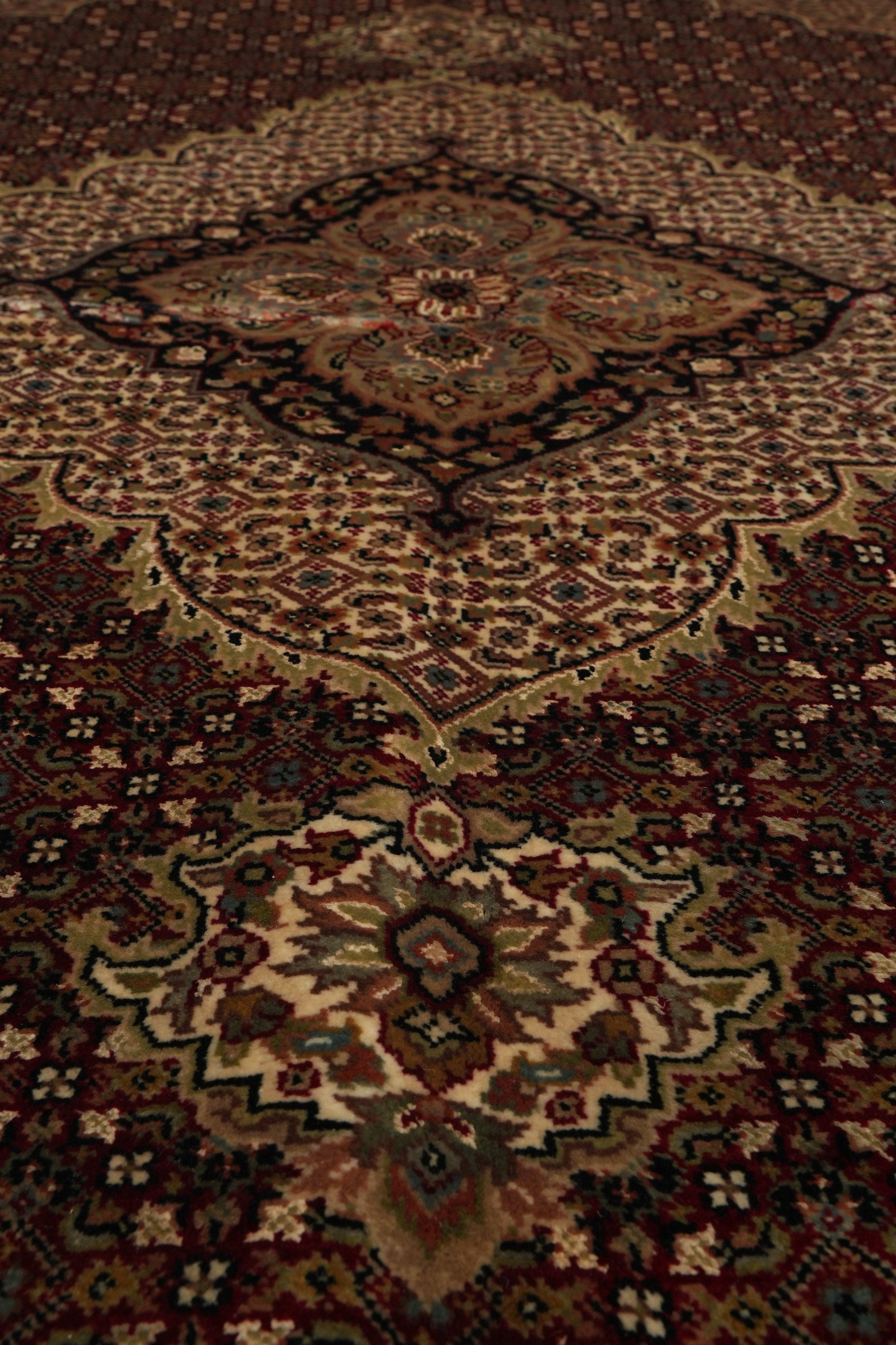 Expertly hand-knotted from premium quality wool with luminous silk highlights, this rug offers a luxuriously soft texture with remarkable durability for everyday living. The traditional Persian design—featuring intricate floral medallions, arabesques, and botanical motifs—is rendered in a sophisticated palette that harmonizes beautifully with both classic and contemporary interiors. Silk accents add a subtle sheen that enhances the intricate patterns and visual depth of this masterful weave.