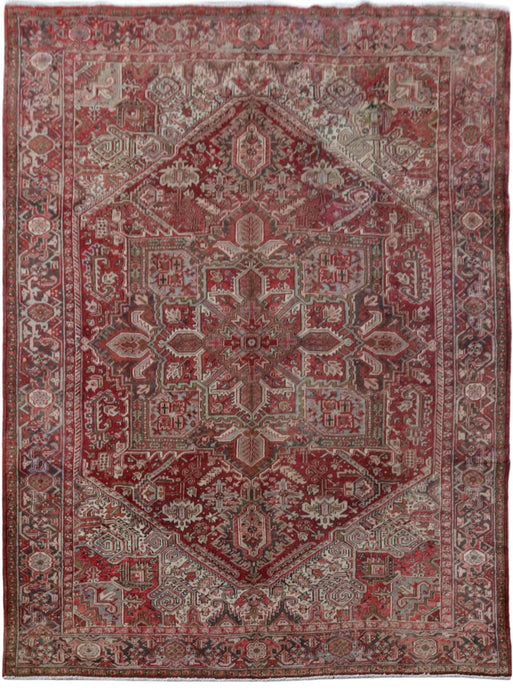 10' x 12.6 Red Semi-Antique Persian Heriz Rug 73156
