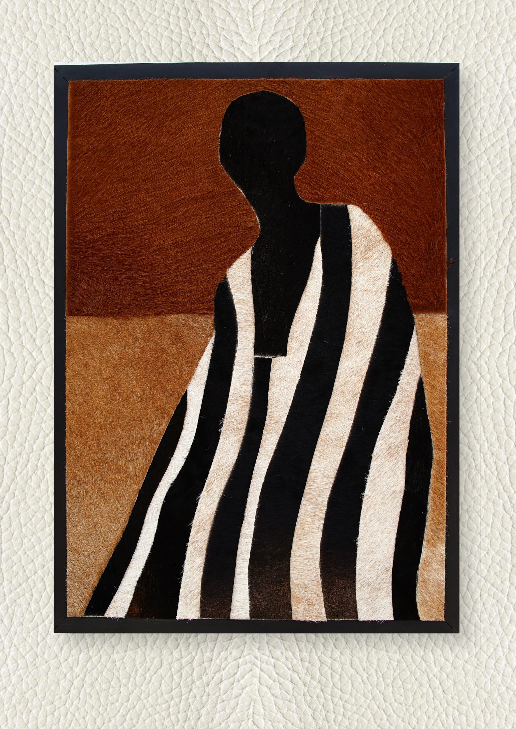 Master Artisan Craftsmanship: Meticulously handcrafted from precision-cut cowhide leather strips, this mosaic wall art showcases exceptional detailing and refined abstract figurative design, with durable MDF backing and Tatron cloth reinforcement.