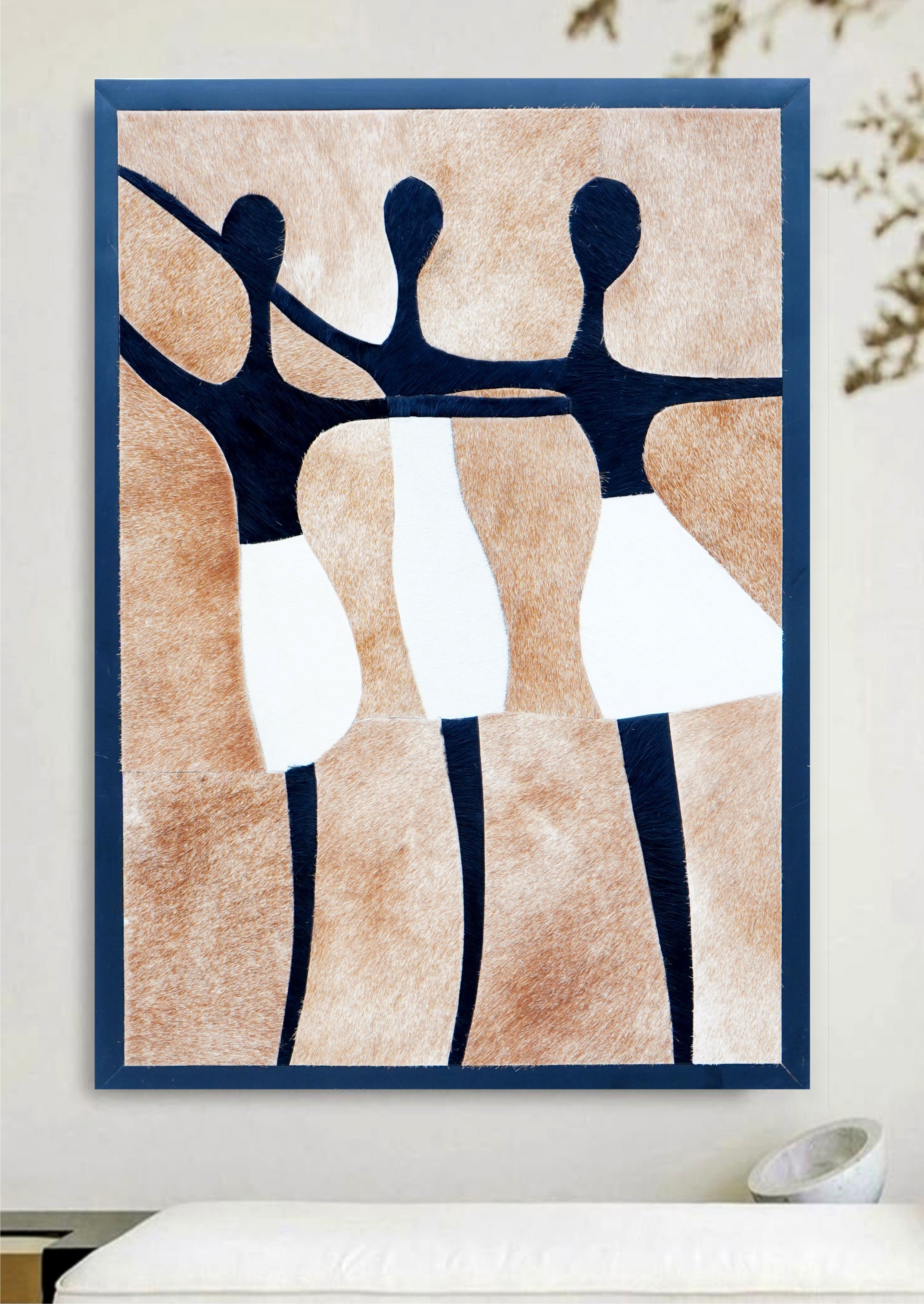 Expert Artisan Craftsmanship: Meticulously handcrafted from individually cut cowhide pieces, this mosaic wall art showcases precision detailing and refined artistry in every flowing silhouette.