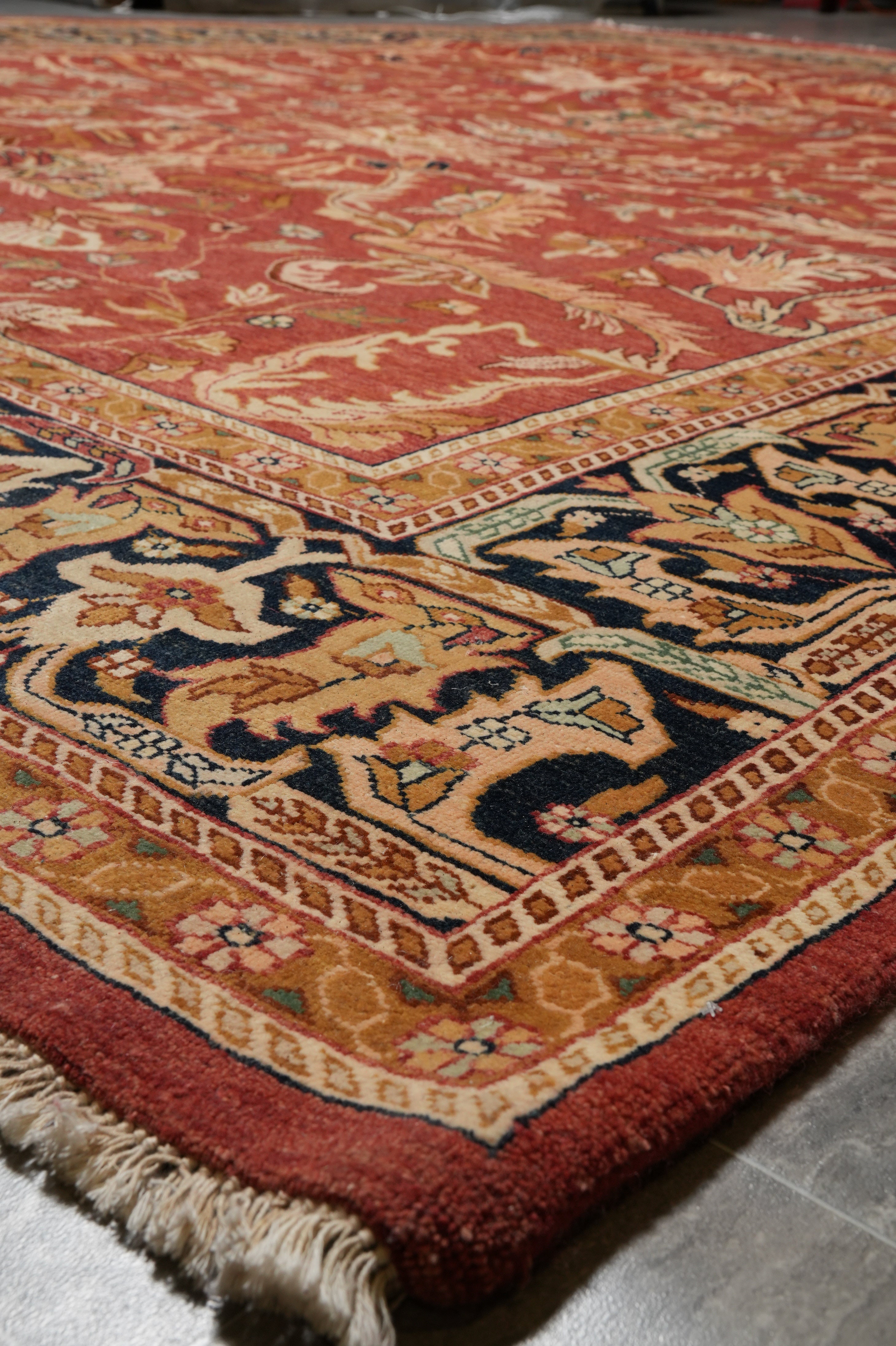 The 11.11 x 17.11 Craftsmanship Handmade Traditional Wool Rug #F-4498 is a grand, statement-making piece designed to elevate large living spaces with timeless elegance. Expertly hand-knotted by skilled artisans, this rug reflects classic traditional design, featuring balanced motifs, refined borders, and harmonious detailing that showcase true craftsmanship. Its generous oversized format makes it ideal for expansive living rooms, formal dining areas, or open-plan interiors.