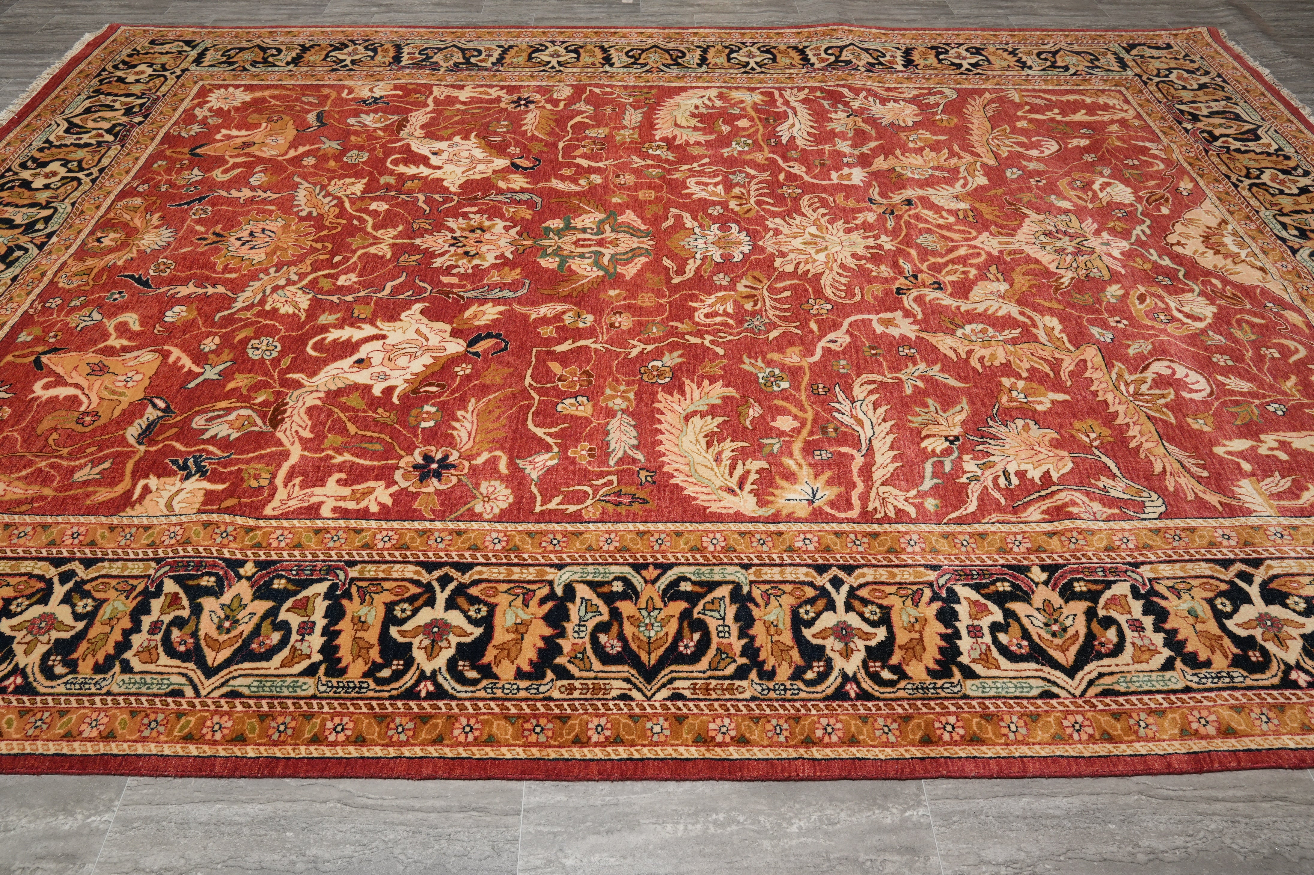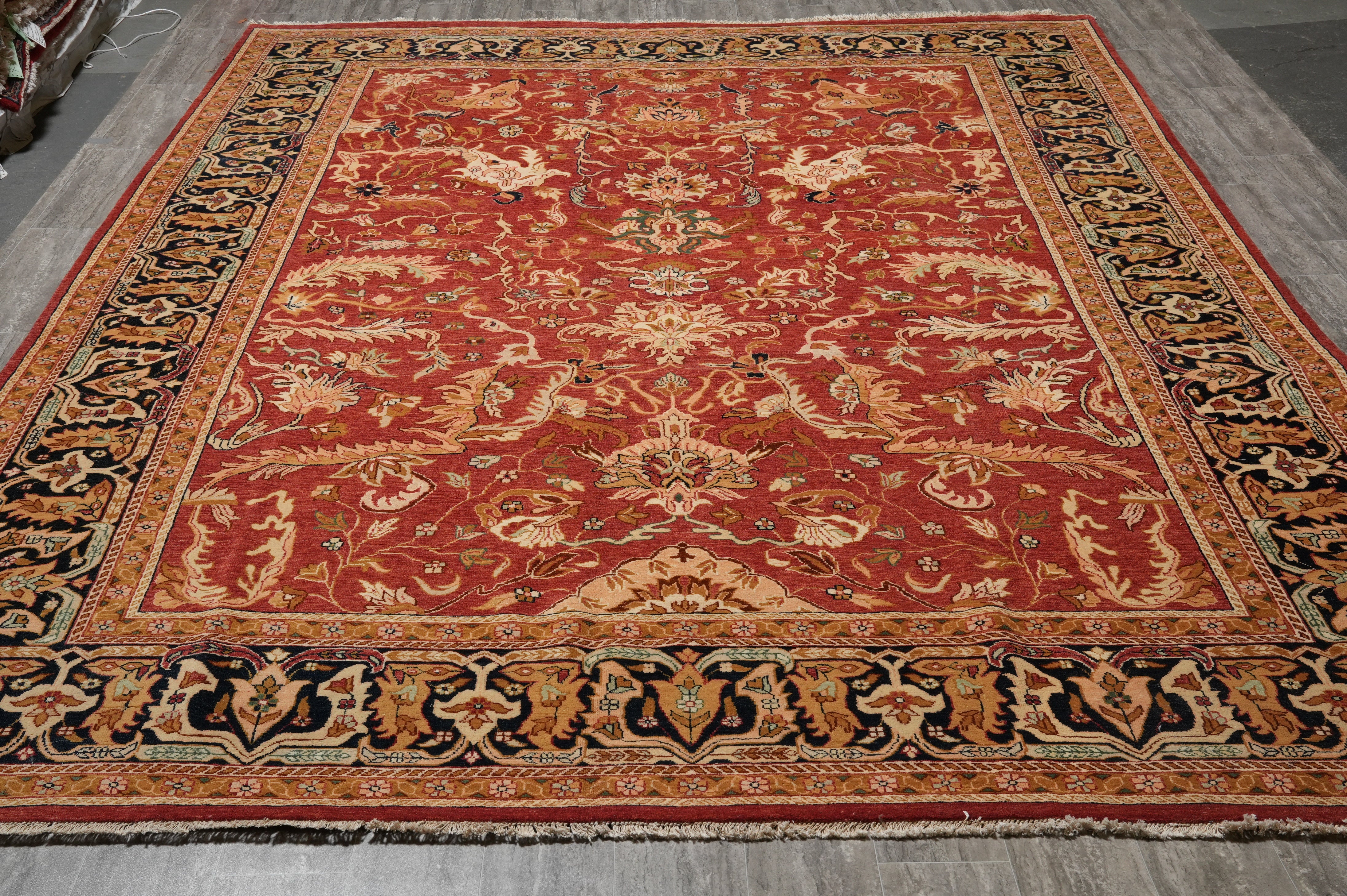Measuring 11.11 x 17.11, this rug anchors large furniture arrangements beautifully, adding warmth, sophistication, and visual balance. Perfect for traditional, transitional, or classic interiors, this wool rug combines size, durability, and refined design. Elegant and enduring, Rug #F-4498 is a testament to handmade artistry and timeless style, offering both beauty and long-lasting quality for distinguished spaces.
